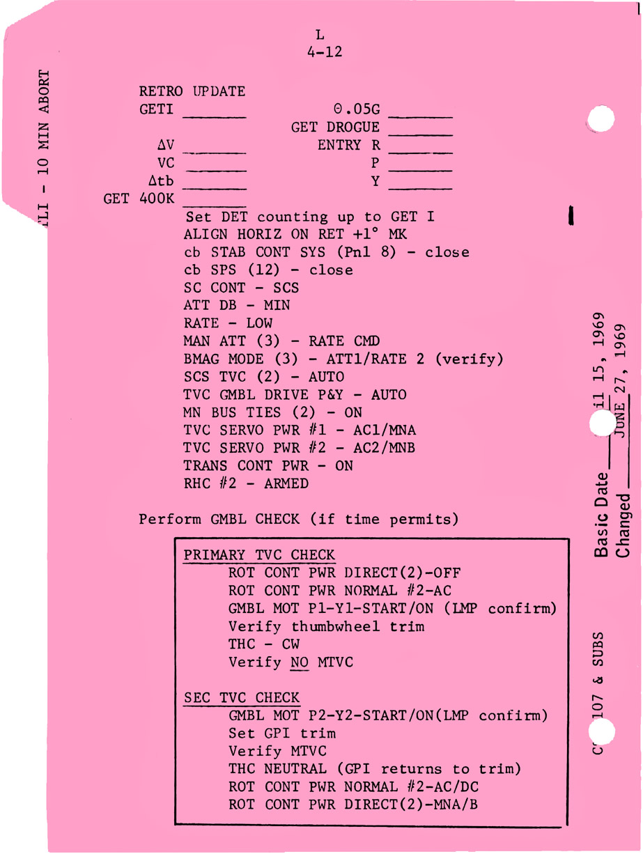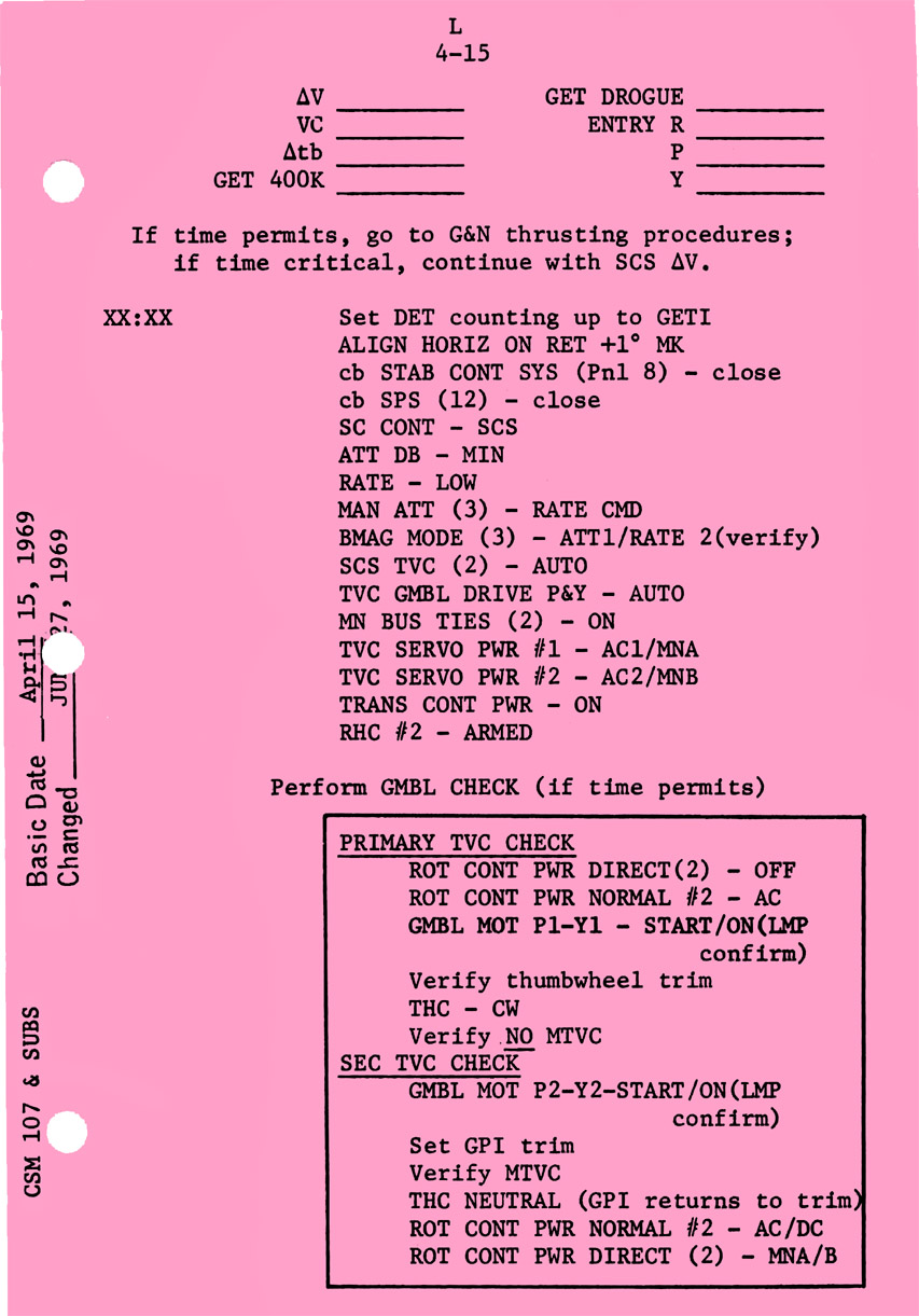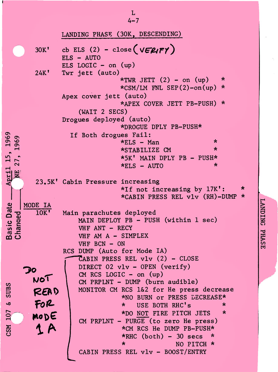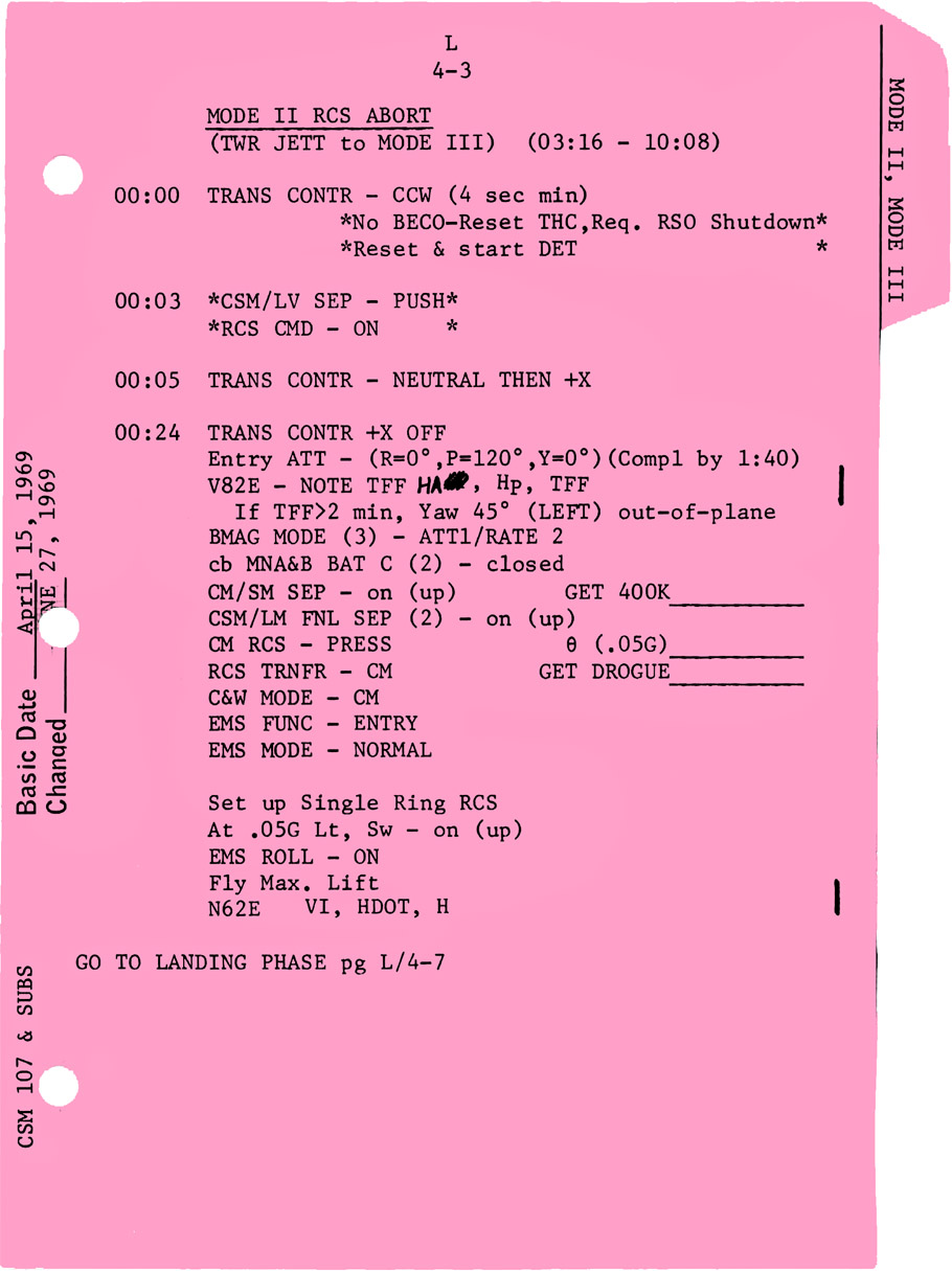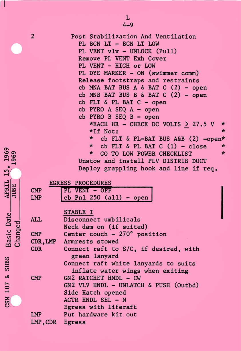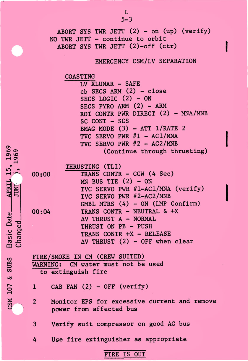 The Launch Operations Checklist presented here was derived from scans of the flown checklist, currently in the collection of the Smithsonian's National Air and Space Museum (Catalog number A19850131000). All of the annotations are on the original. These images are presented with permission of the Smithsonian, National Air and Space Museum subject to its terms of use policy.