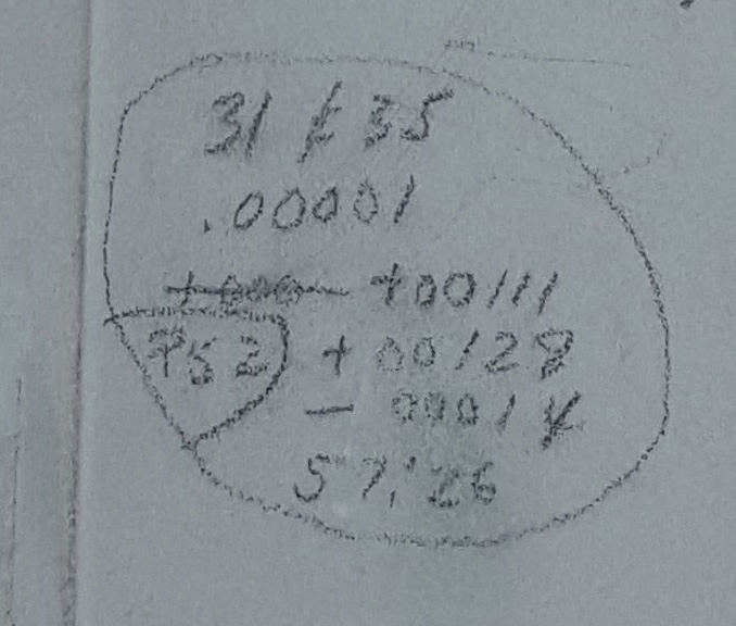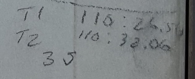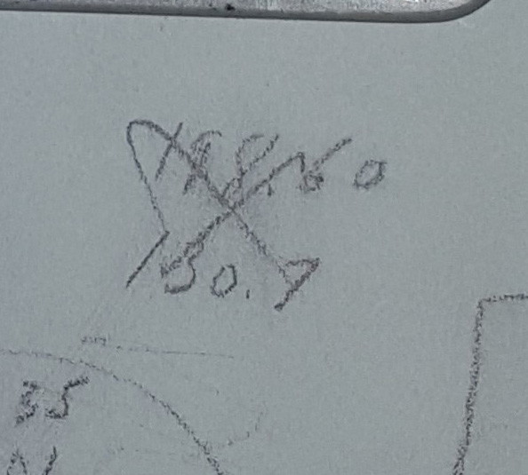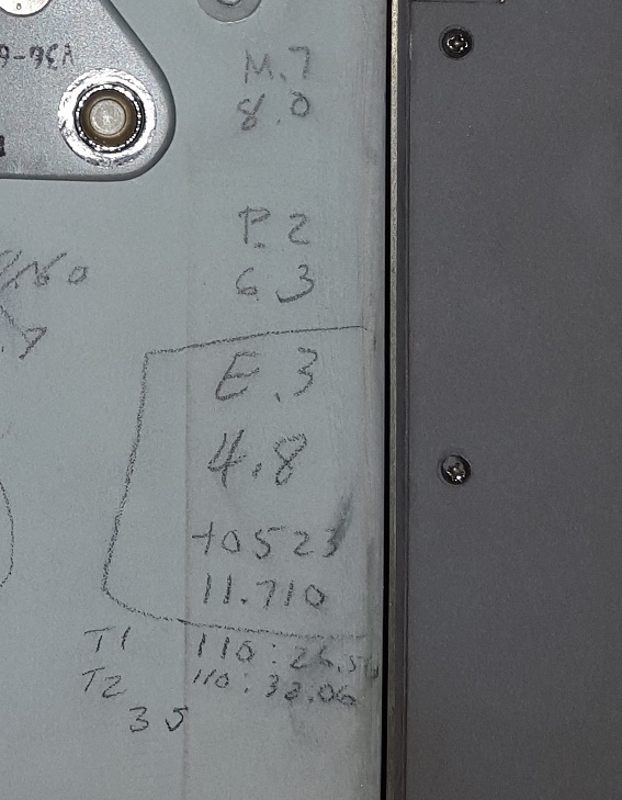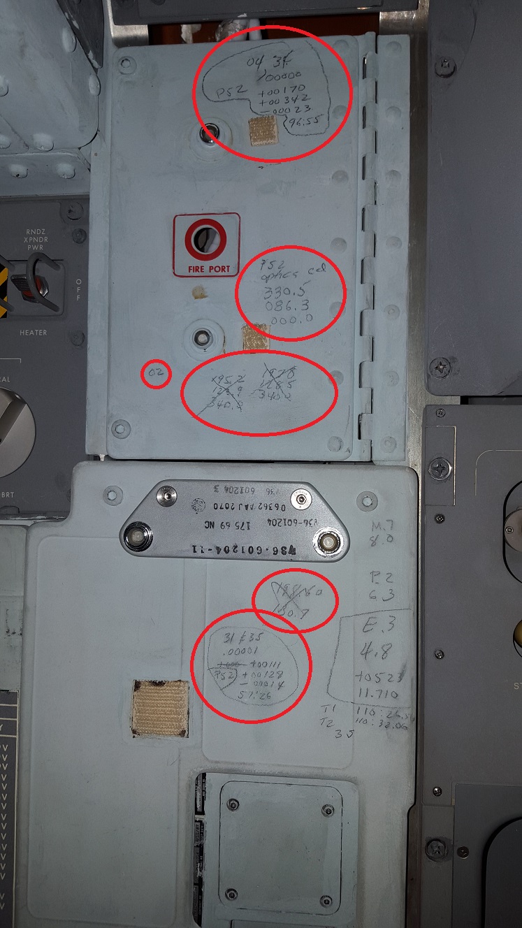 Note that although Aldrin copied this at 022:55:09, he may not have written it on the door. He was acting as the copy secretary, taking down changes and updates from MCC. This data was part of a larger batch and one would have expected him to write this on paper. However, the writing style seems a little different to the others which we feel sure are likely Mike's.