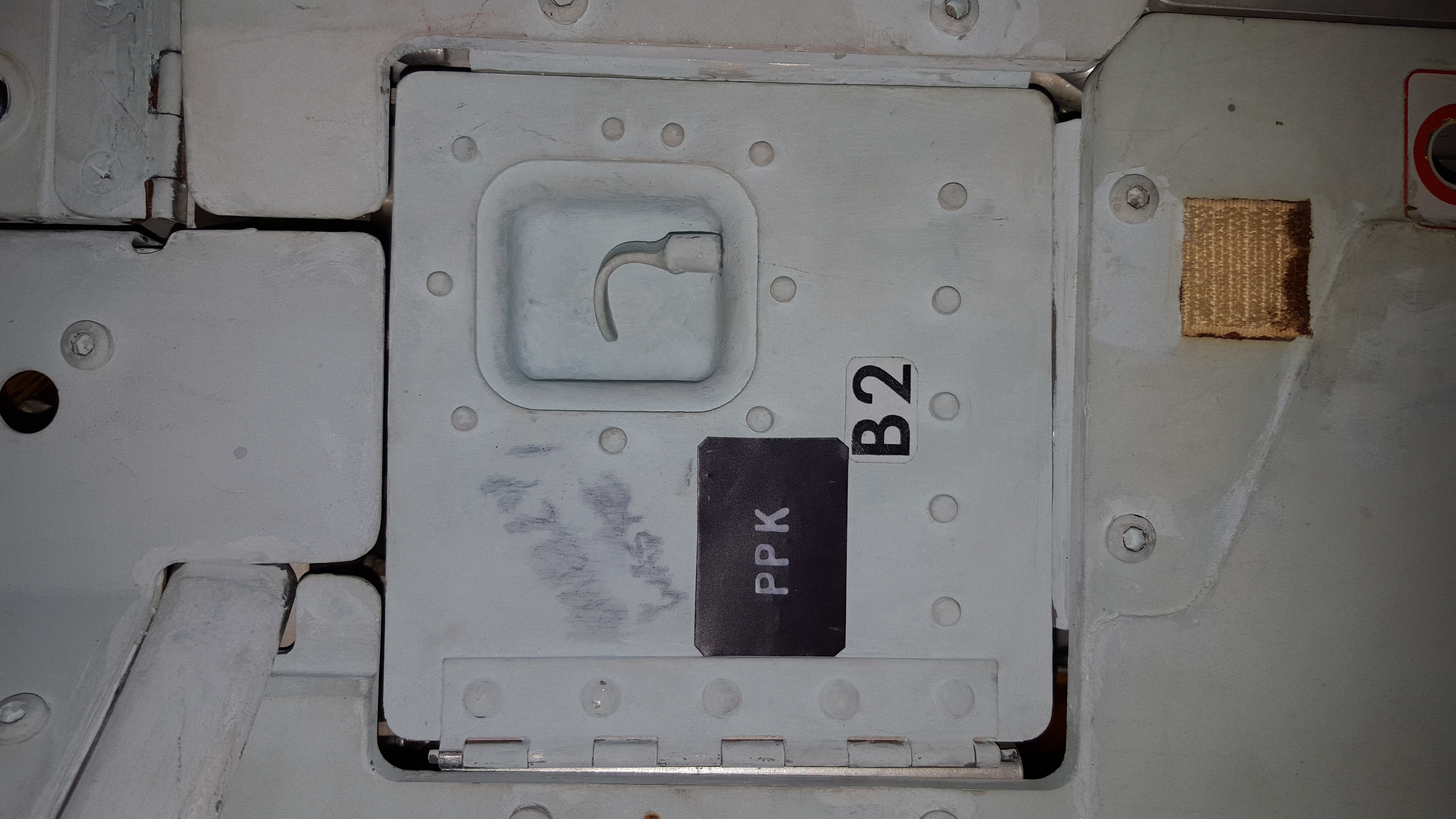 View of the panel and door area of the Lower Equipment Bay to the left of the Navigation Station.