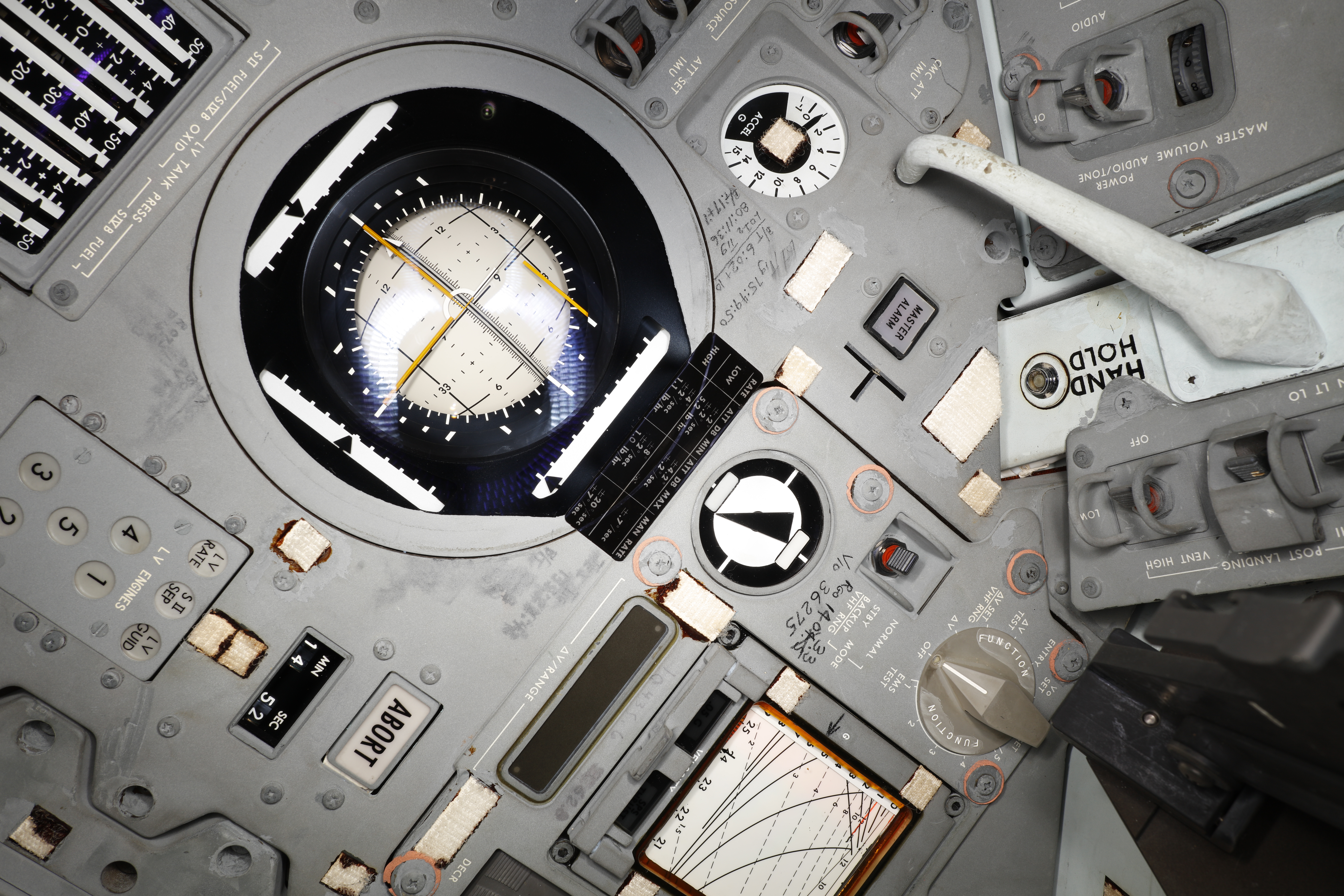 In order to check the alignment of the guidance platform, reference had to be made to the stars. Only two were required and Collins used the sextant, a 28-power optical device built into the spacecraft’s hull, to take marks once the instrument had been precisely aimed at each one.