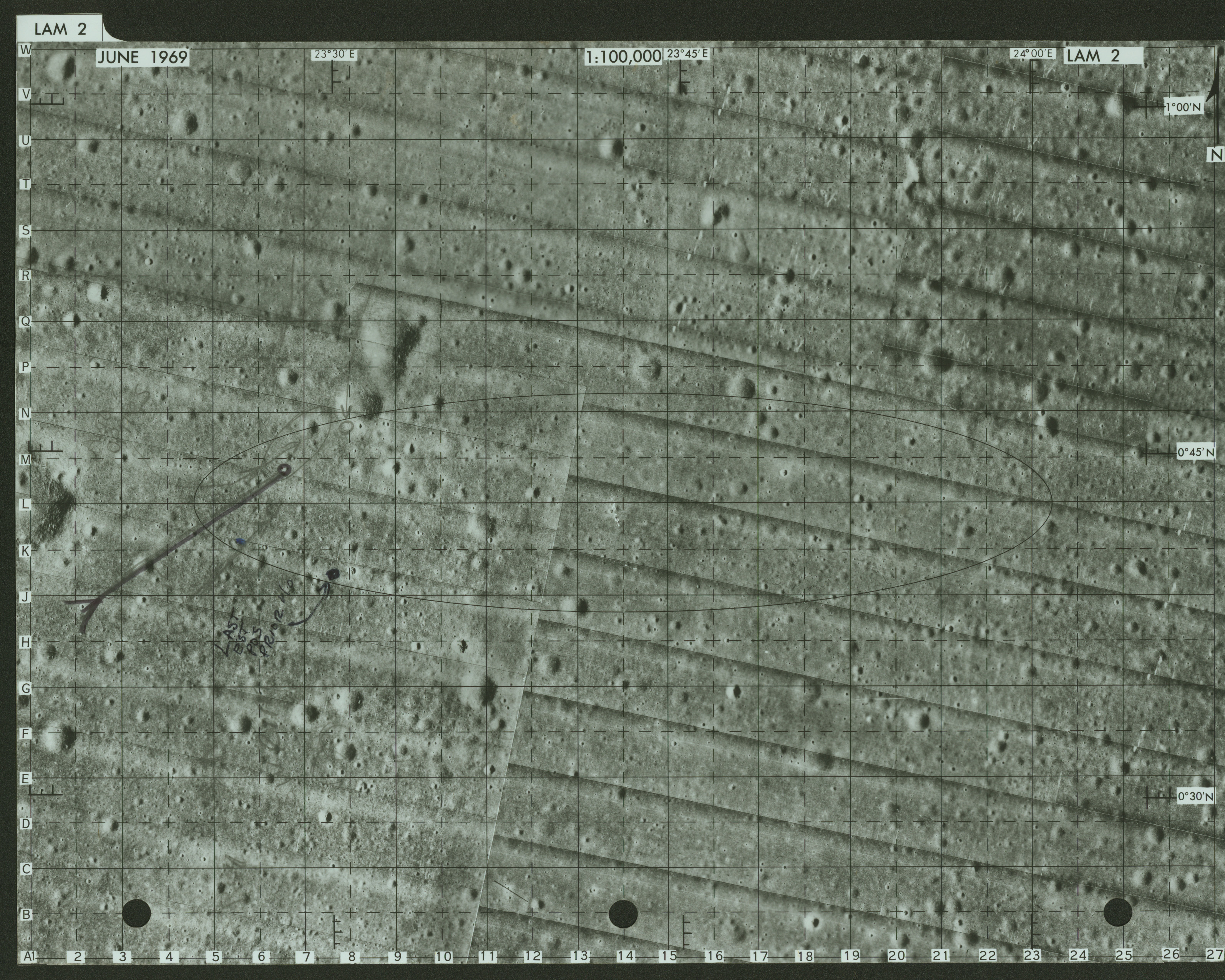 - Landmark Tracking Notes - These notes refer to map coordinates read up to CMP Michael Collins from Mission Control in attempts to locate the Lunar Module Eagle on the lunar surface using the spacecraft's sextant during orbital passes over the landing area. These are associated with computer program P22.