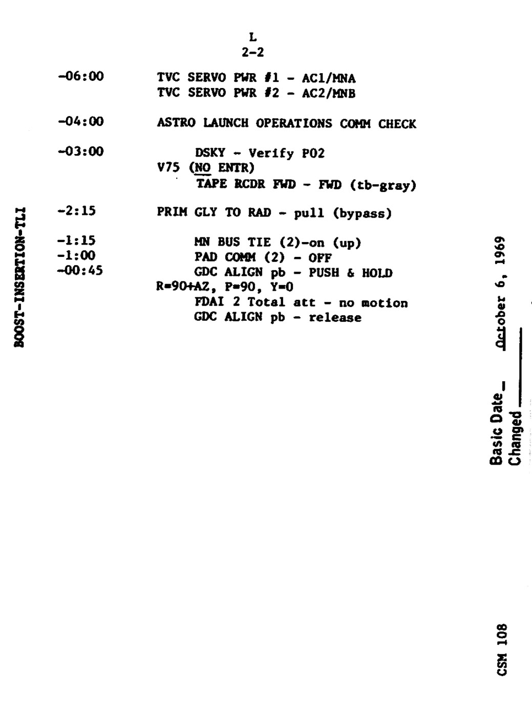 Coming up on the 2-minute mark in the count. T minus 2 minutes and counting, T minus 2. Spacecraft commander now has placed the Environmental Control System of the spacecraft on internal. Up to this time, we've been providing external sources for the Environmental Control System. We're checking the hydraulics of the first stage of the launch vehicle now. We are still Go. One minute, 40 seconds and counting at this time. T minus 90 seconds and counting, T minus 90, still Go. Our status board here in Firing Room 2 indicates all is still well with the countdown. Third stage tanks now pressurized as the automatic sequence continues.
