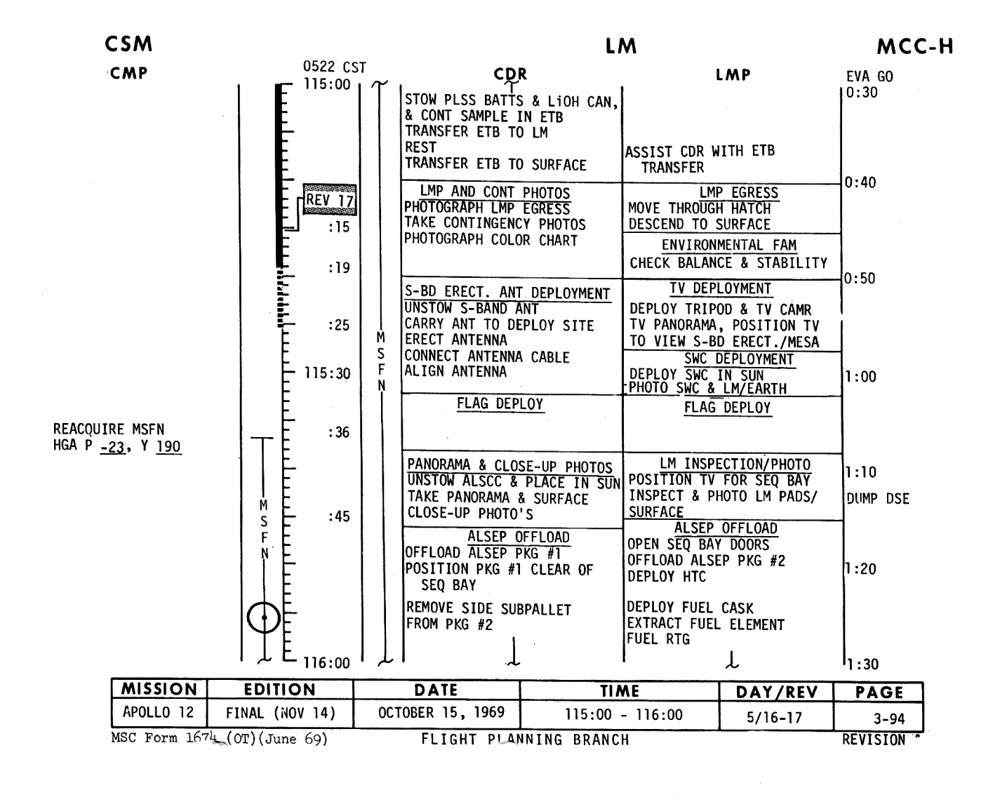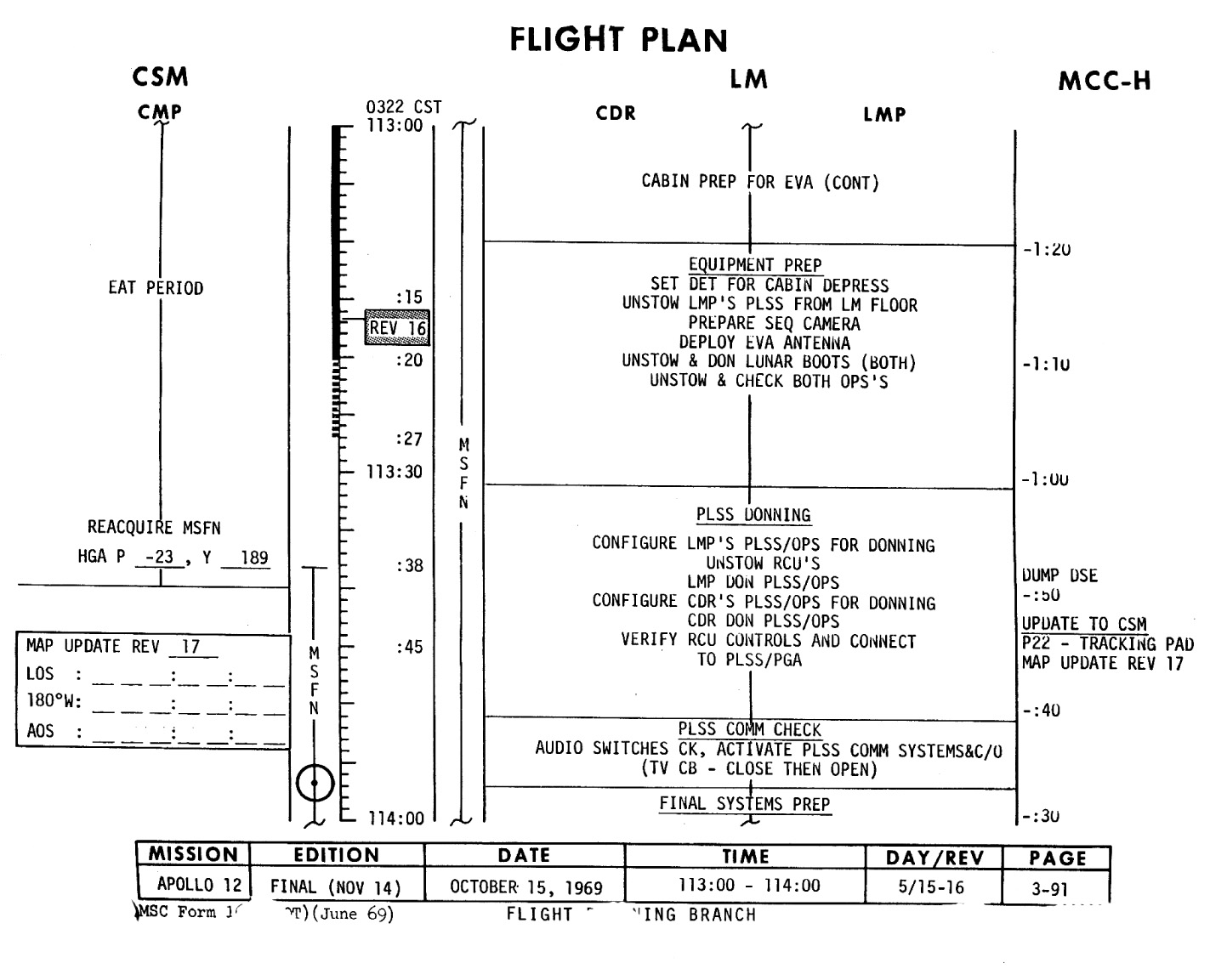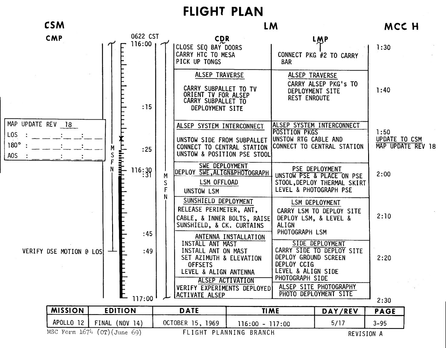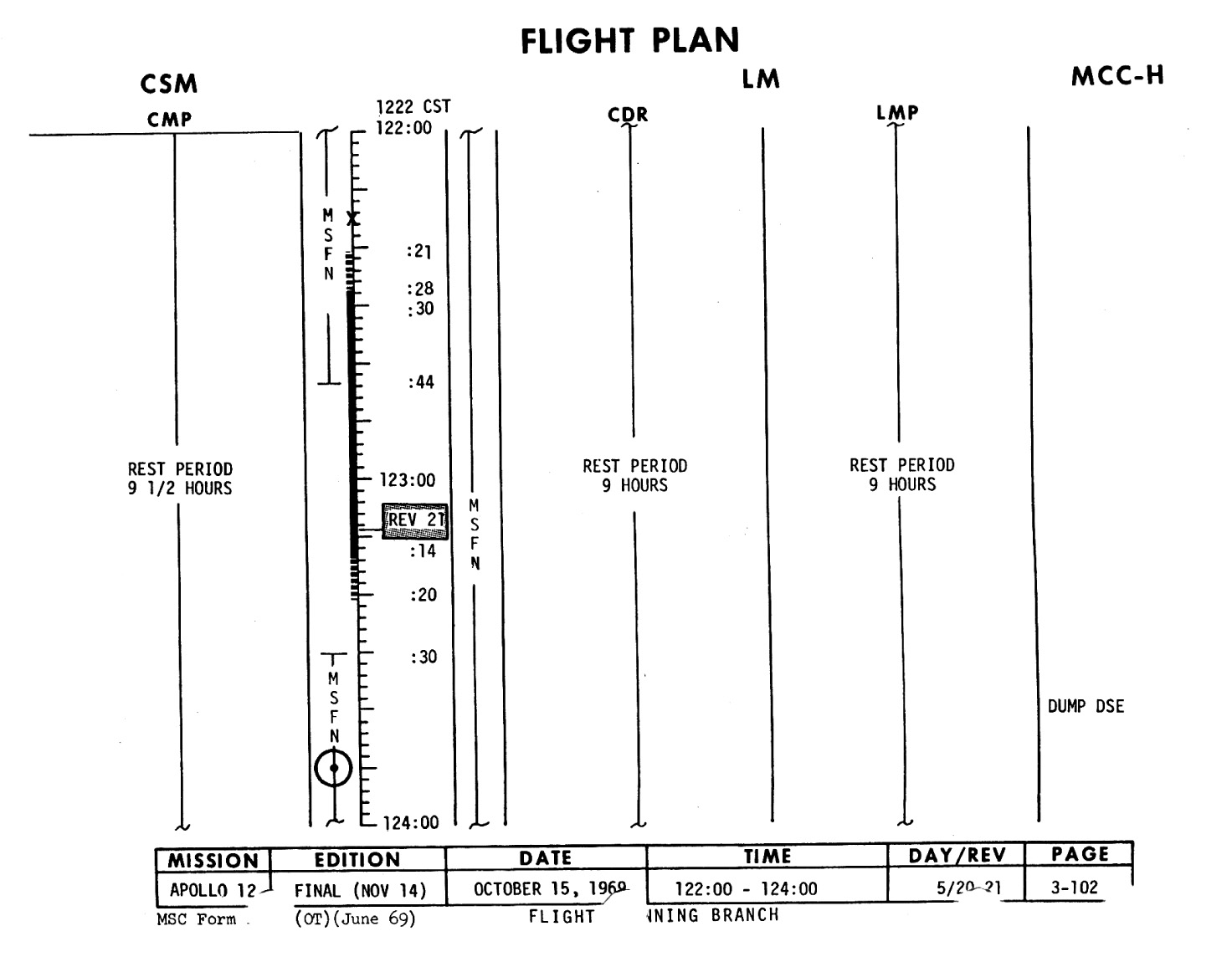 119:50:29 Gibson: Intrepid, plane change burn was good, and we show that you're about 1.15 behind in the Flight Plan.