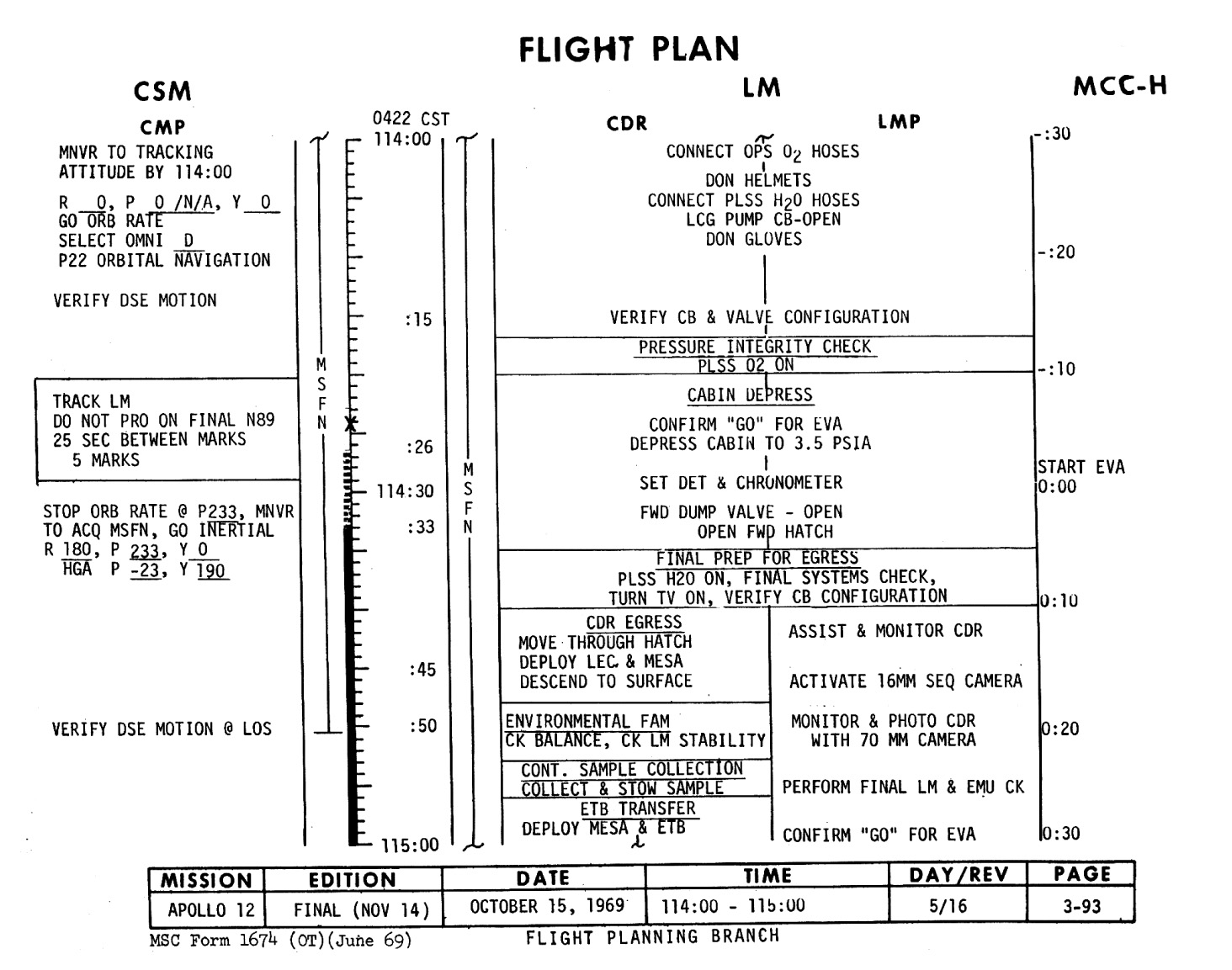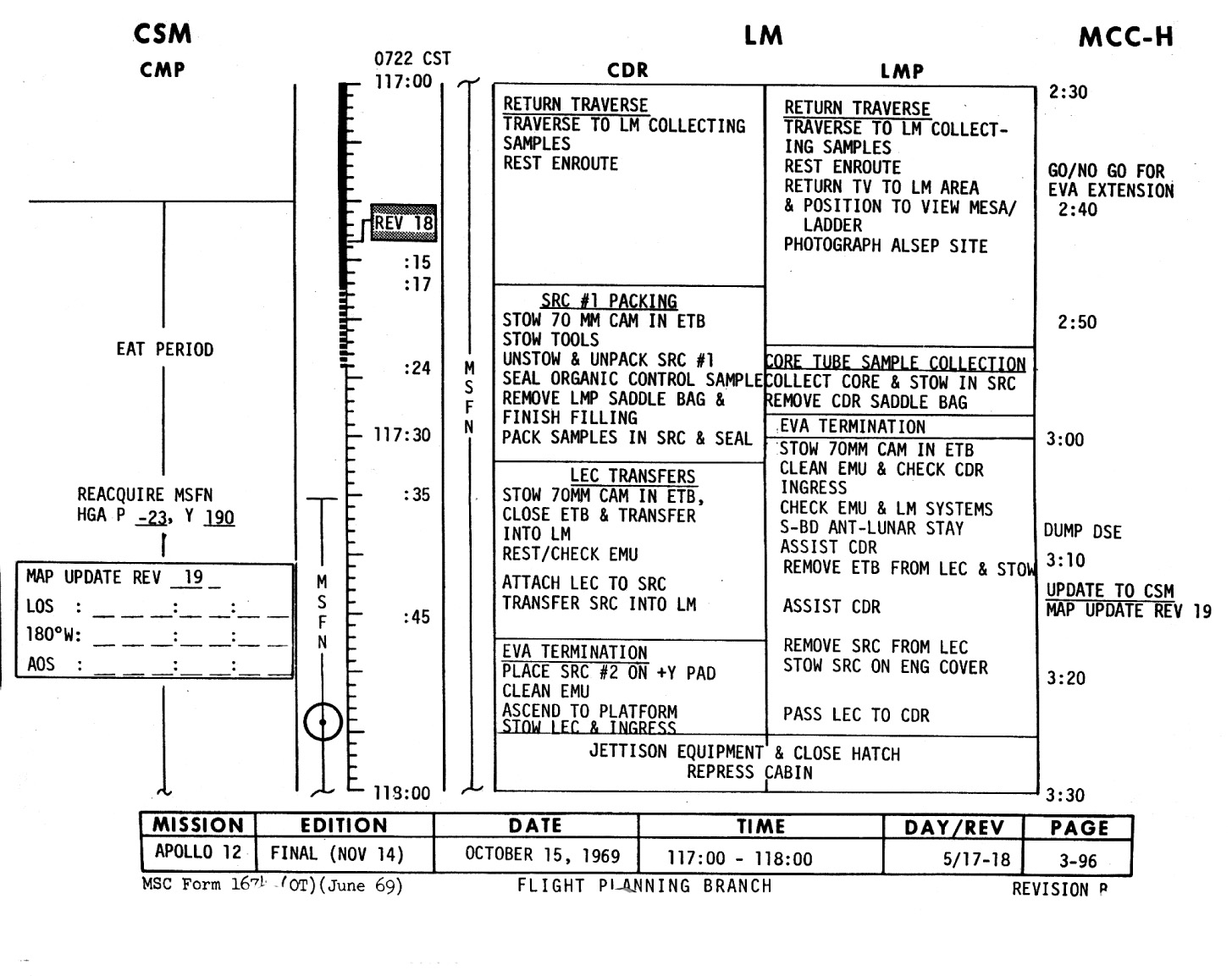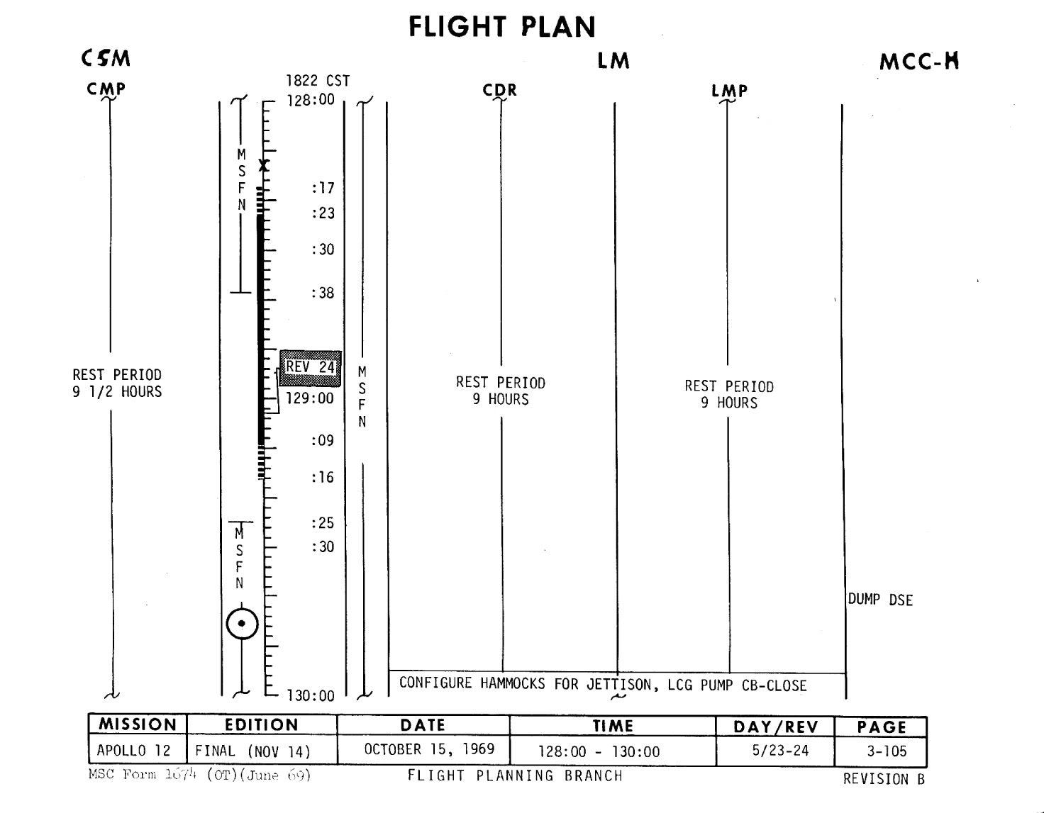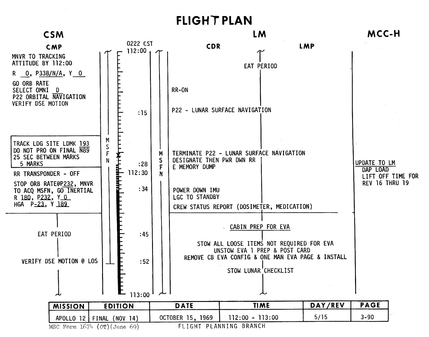 119:50:29 Gibson: Intrepid, plane change burn was good, and we show that you're about 1.15 behind in the Flight Plan.