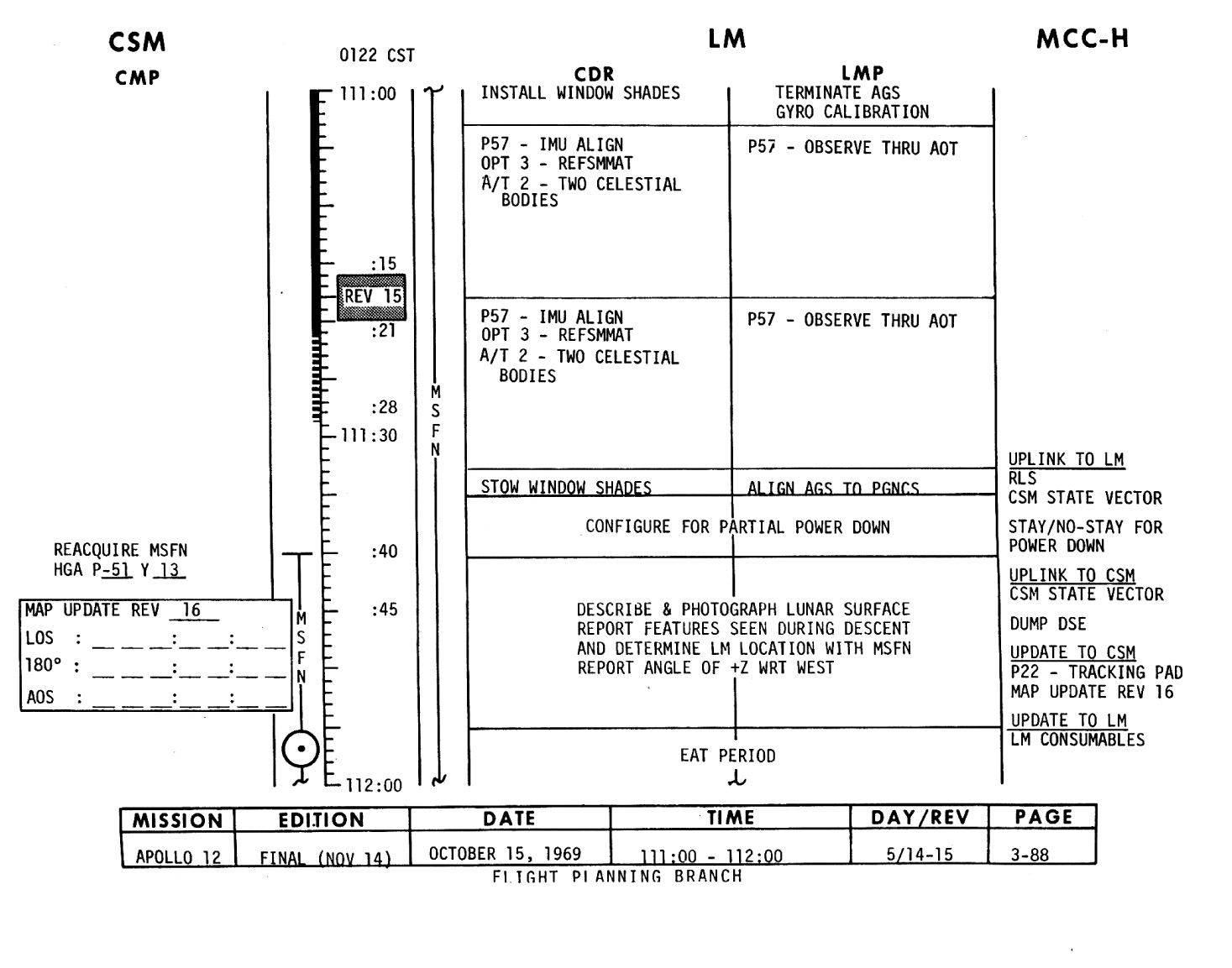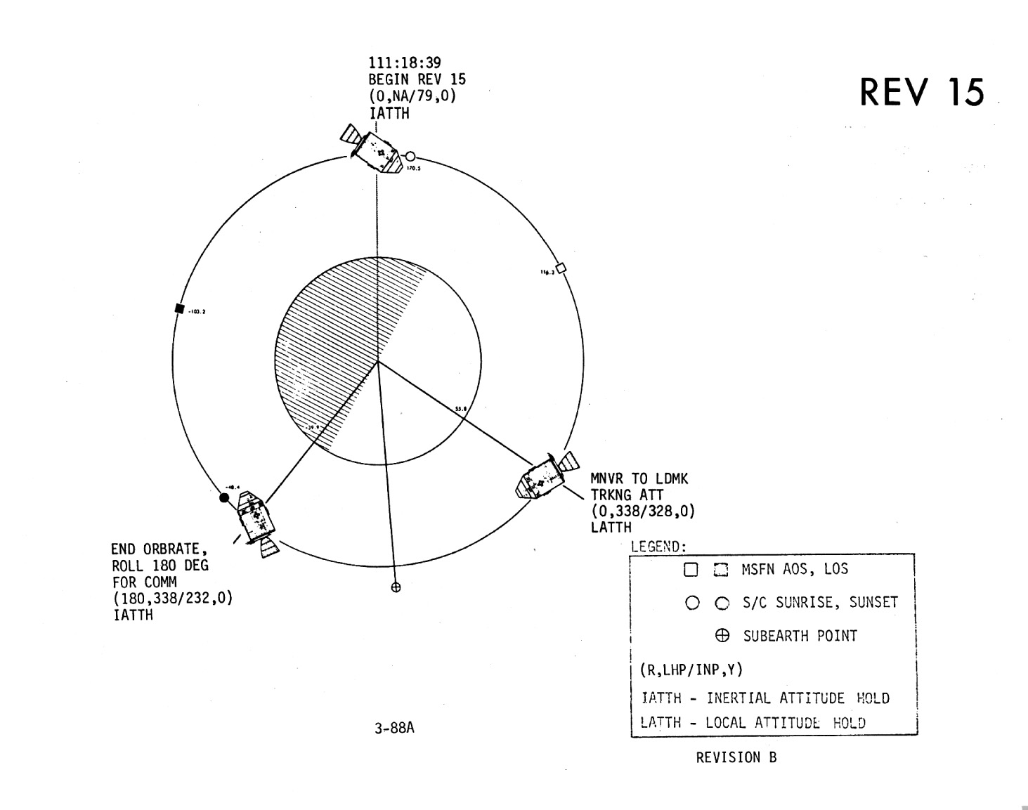 111:47:11 Carr: Roger. Map update Rev 16: LOS is 112:53:48, 113:18:23, 113:39:28.