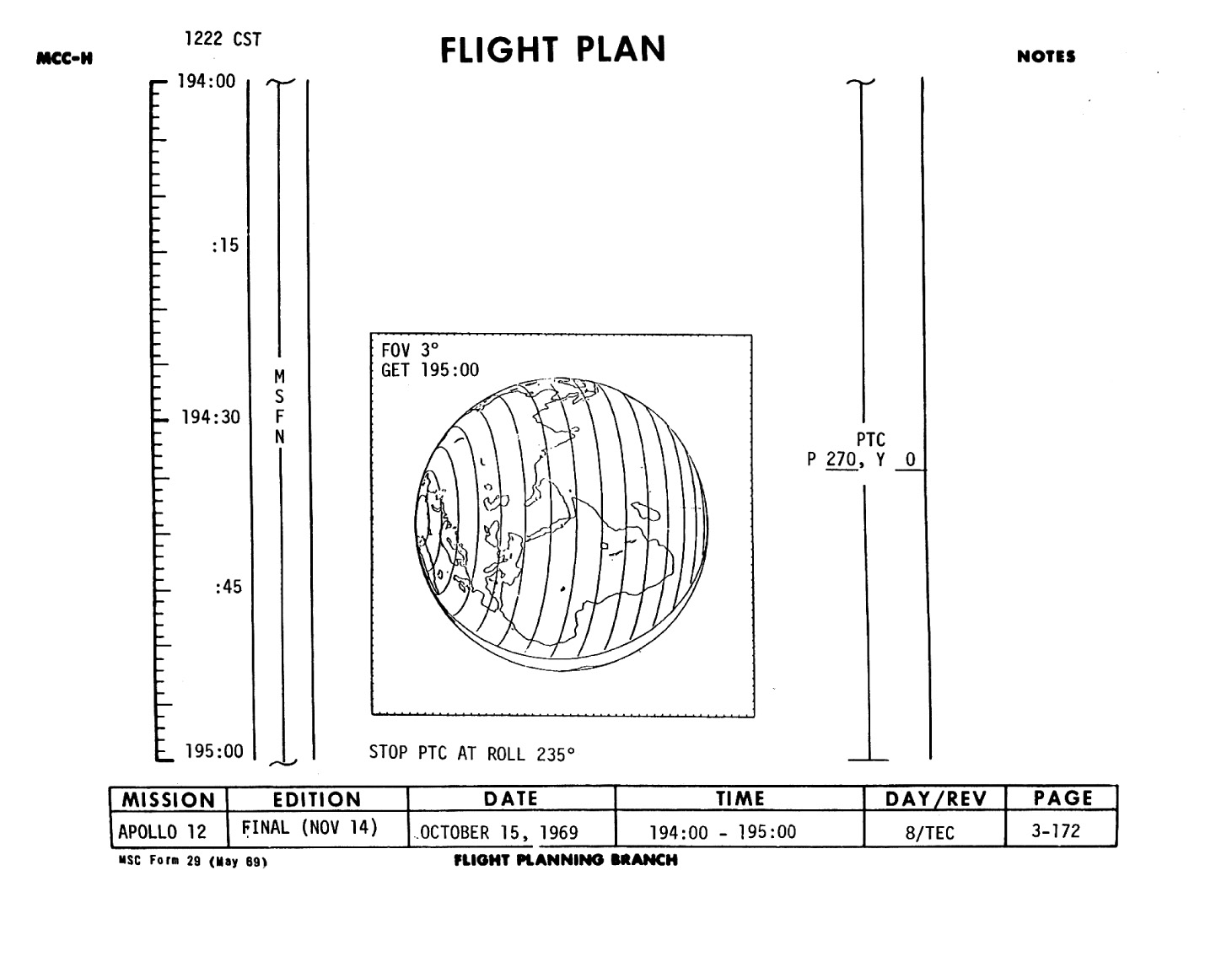 We presently show an altitude of 172,138 nautical miles above the earth for Apollo 12. Now traveling at 3,208 feet per second.