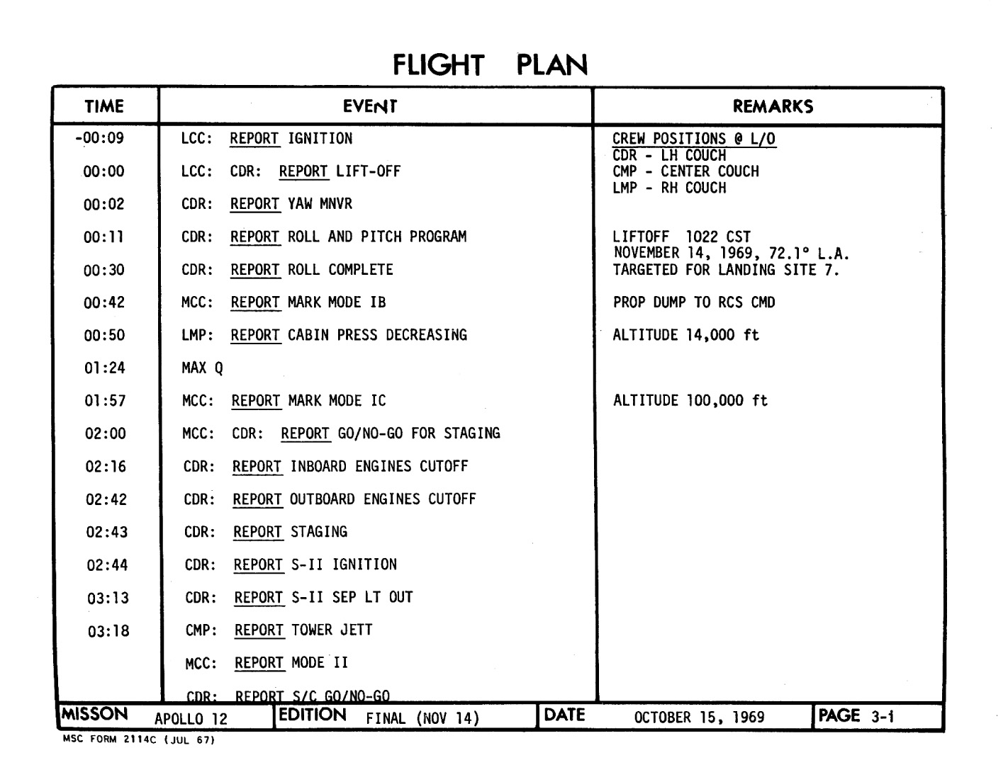 The Flight Plan presented here was derived from scans of microfilm supplied by the National Archives and Records Administration (NARA) who photographed a contemporaneous copy.