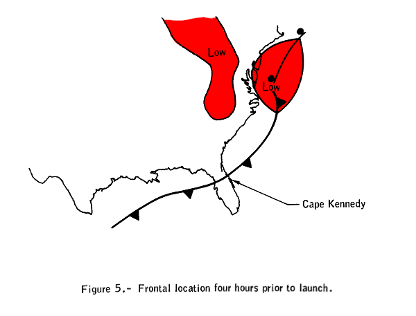 Cold front over the East Coast of the United States, and Florida, on the launch day.