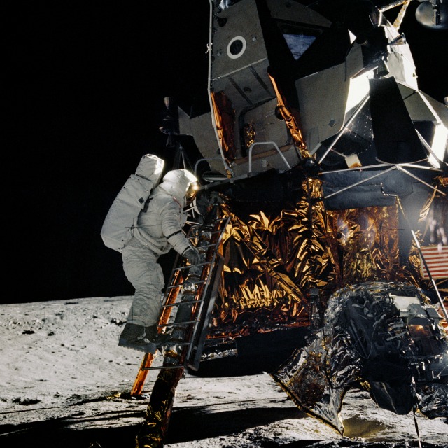 Alan Bean comes down the ladder after a succesful lunar landing.