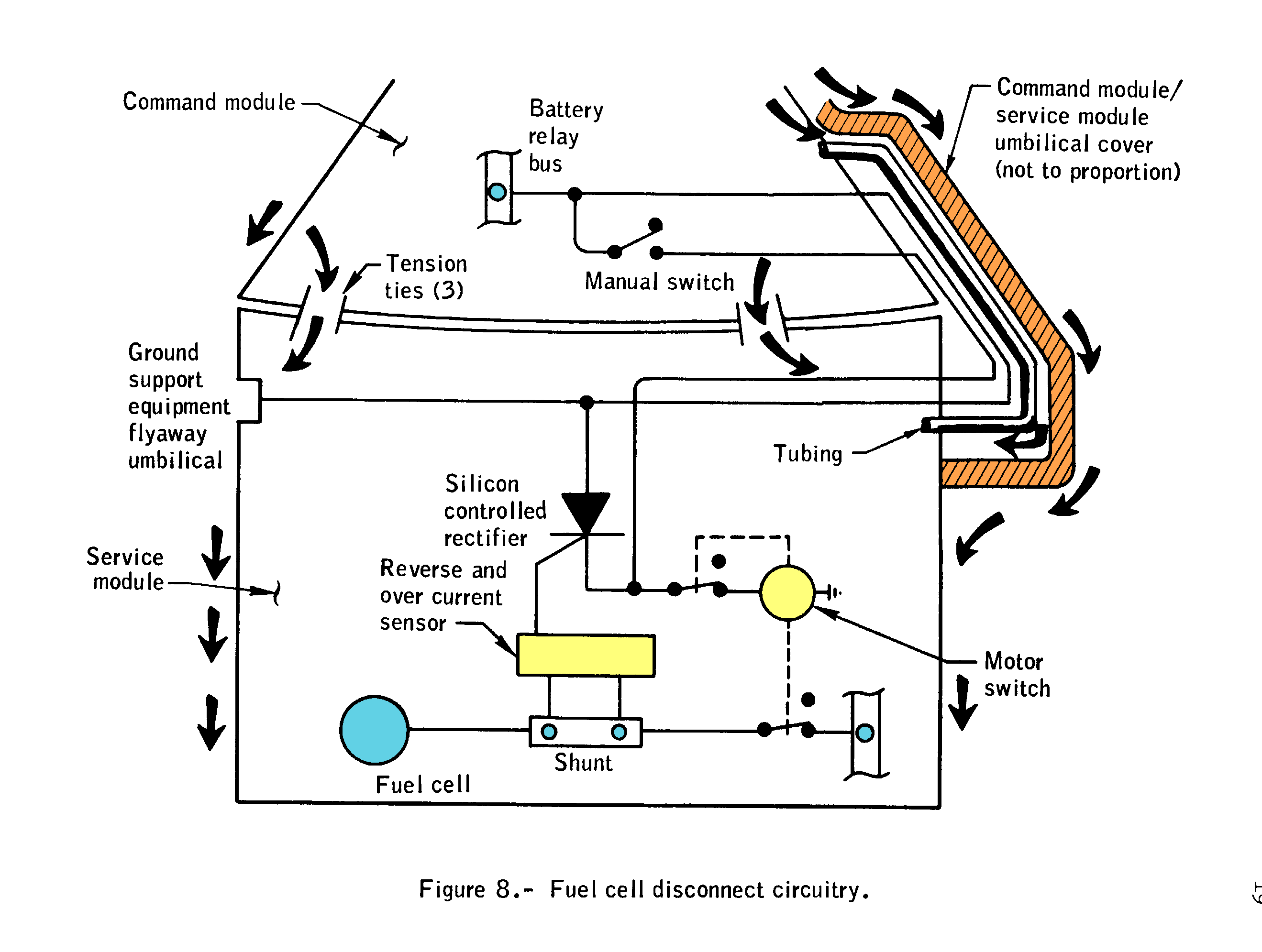 Fuel cell disconnect event, with potential electric discharge pathways through the Command Service Module.