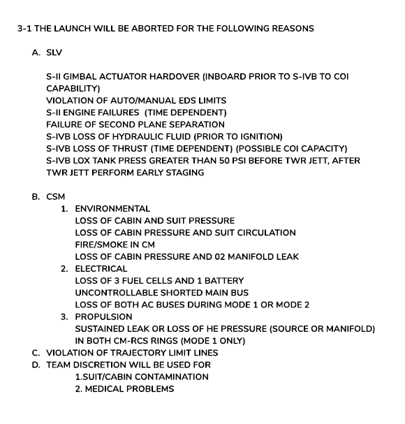 Apollo 12 launch abort rules. Reproduced from Apollo 12 Mission Rules.