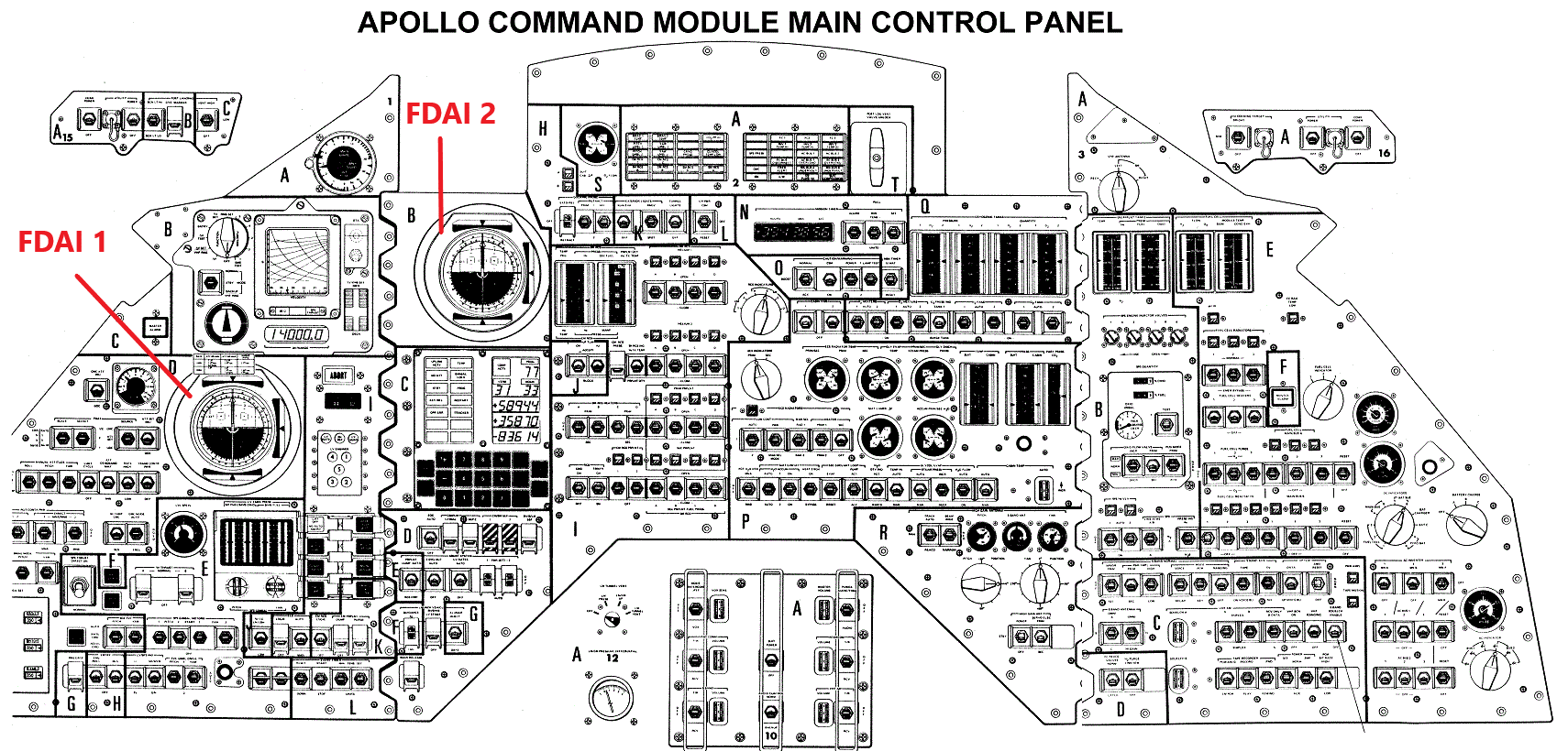 Looking at the Main Display Console with the g forces pressing increasingly on them, Pete Conrad saw that the FDAI in front of him continued to spin around, indicating that it had lost its attitude reference. Notably, however, CMP Dick Gordon on the center seat noted over the radio that the second FDAI, which was directly in front of him, still displayed accurate information. For the launch, the Commander's FDAI derived its information from the inertial guidance system. The CMP's FDAI was run as a backup by having its information fed from the auxiliary system known as the GDC - the Gyro Display Coupler.