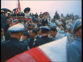 Rain showers continued, along with the countdown to launch that was set for 11.22 am local time, Eastern Standard Time. This made for uncomfortable waiting for the crowds gathering for the launch. The Public Affairs Officer, responsible for narrating the mission live over freely available radio, continued to issue weather updates as well. Although this was standard fare in terms of the PAO's announcements during this time of expectant waiting, the rainy conditions added a little extra flavour to these comments.
