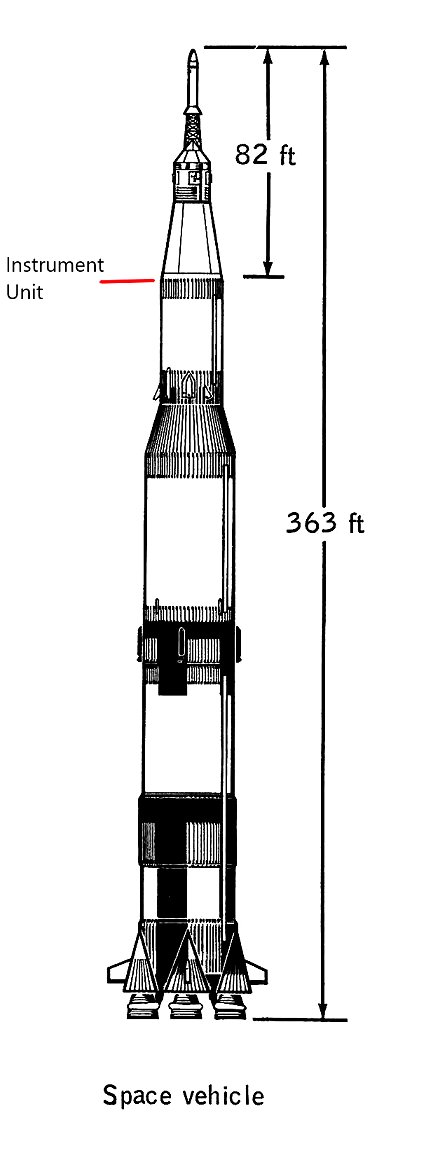 Saturn V-Apollo stack with the Instrument Unit indicated. Adapted from NASA original.