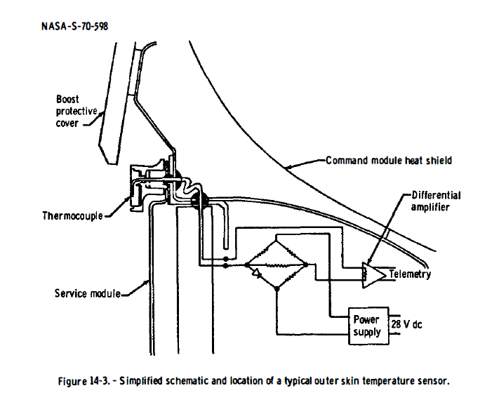Similarly non-critical was the loss of Service Module skin temperature sensors. Consisting of a thermocouple and a series of resistors, they used a very small current of 0.020 amperes, and a mere 0.100 ampere current would be enough to damage the system. These sensors were usually used to infer the position of the spacecraft in relation to the sun, since direct sunlight would cause temperature to rise on the section of the Service Module in question. This too, was not a mission-critical item. The final lost sensor was a similar temperature sensor in the nuclear particle analyser inside the Service Module. All these equipment used very low currents and solid state equipment, which made them very sensitive to the electric discharge from the lightning. The rest of the thousands of pieces of equipment onboard continued to function normally.