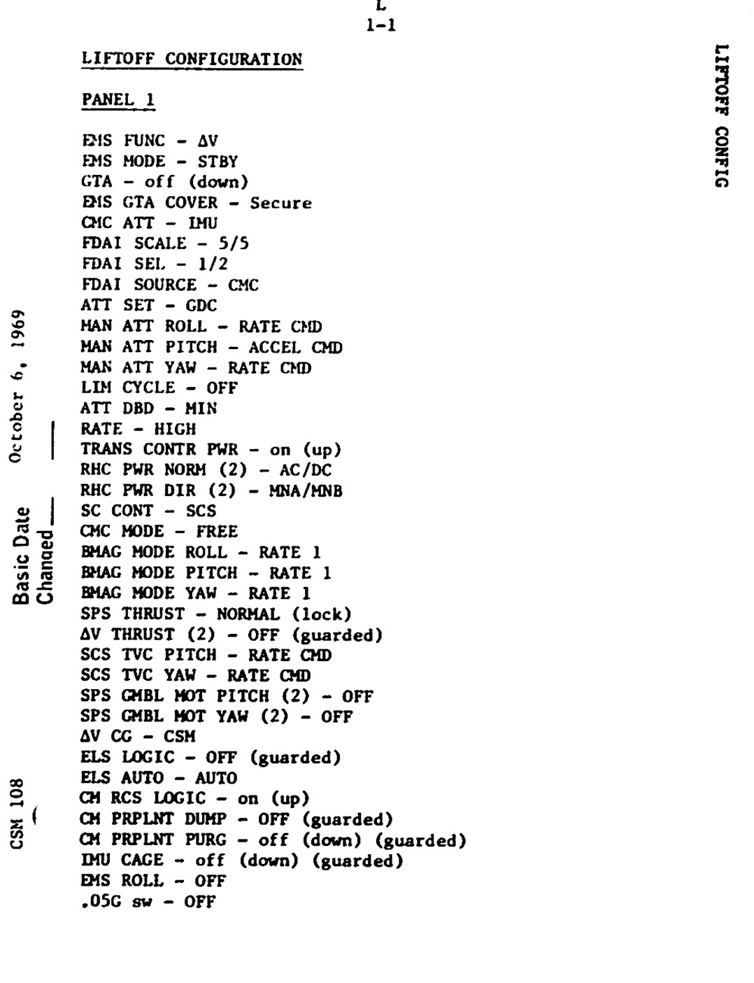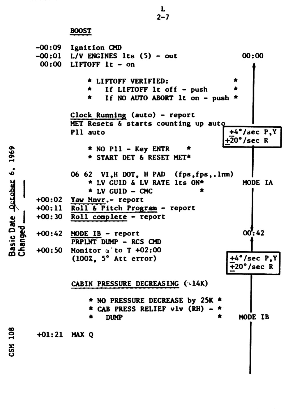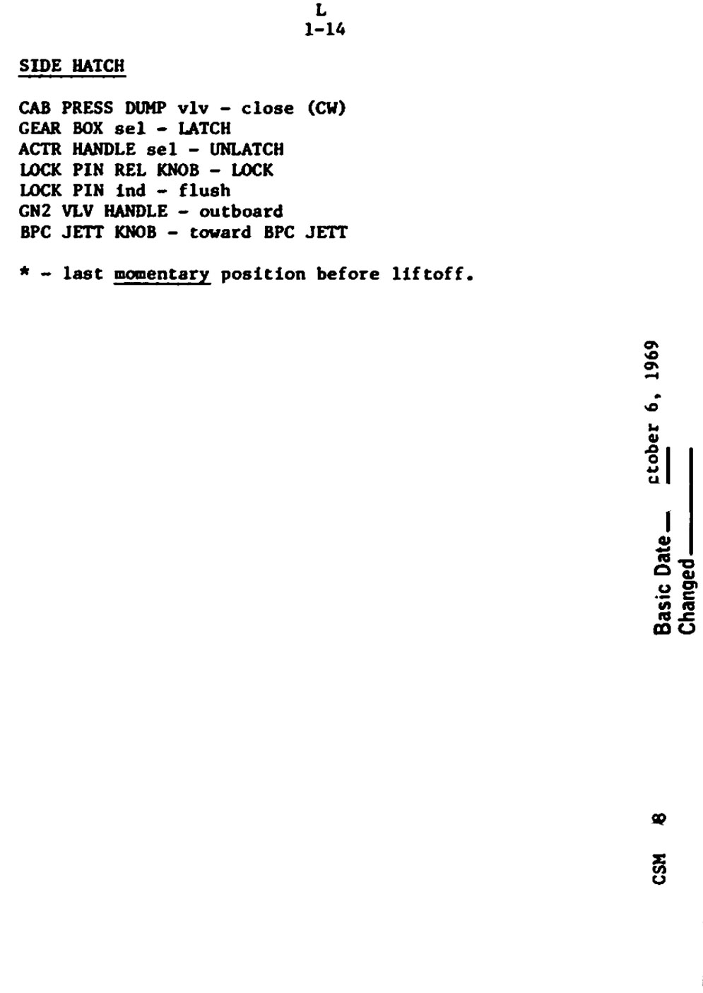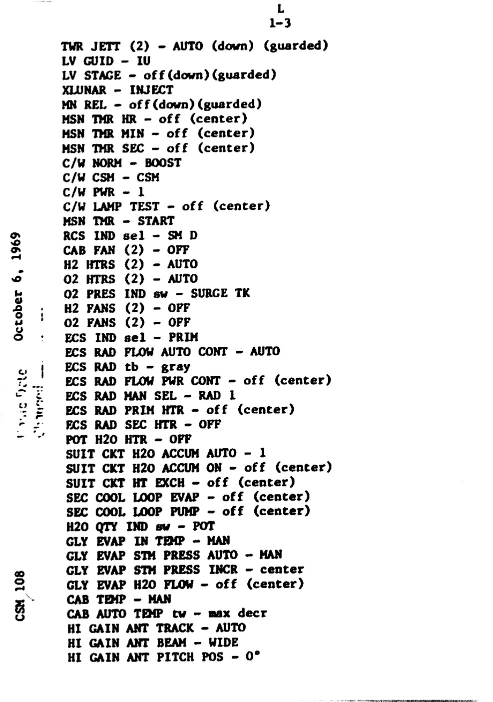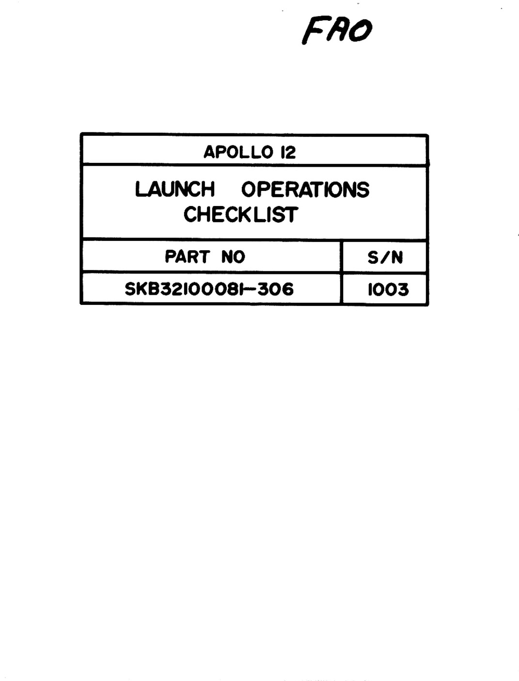 The Launch Operations Checklist presented here was derived from scans of microfilm supplied by the National Archives and Records Administration (NARA) who photographed a copy of the Launch Operations Checklist used by the Flight Activities Officer (FAO).