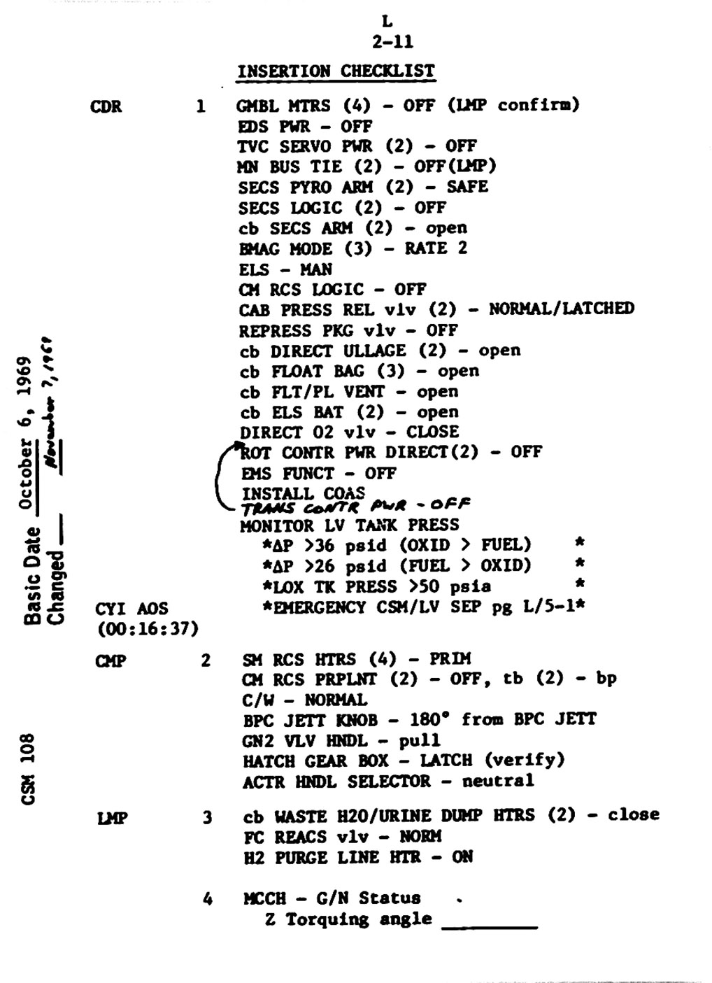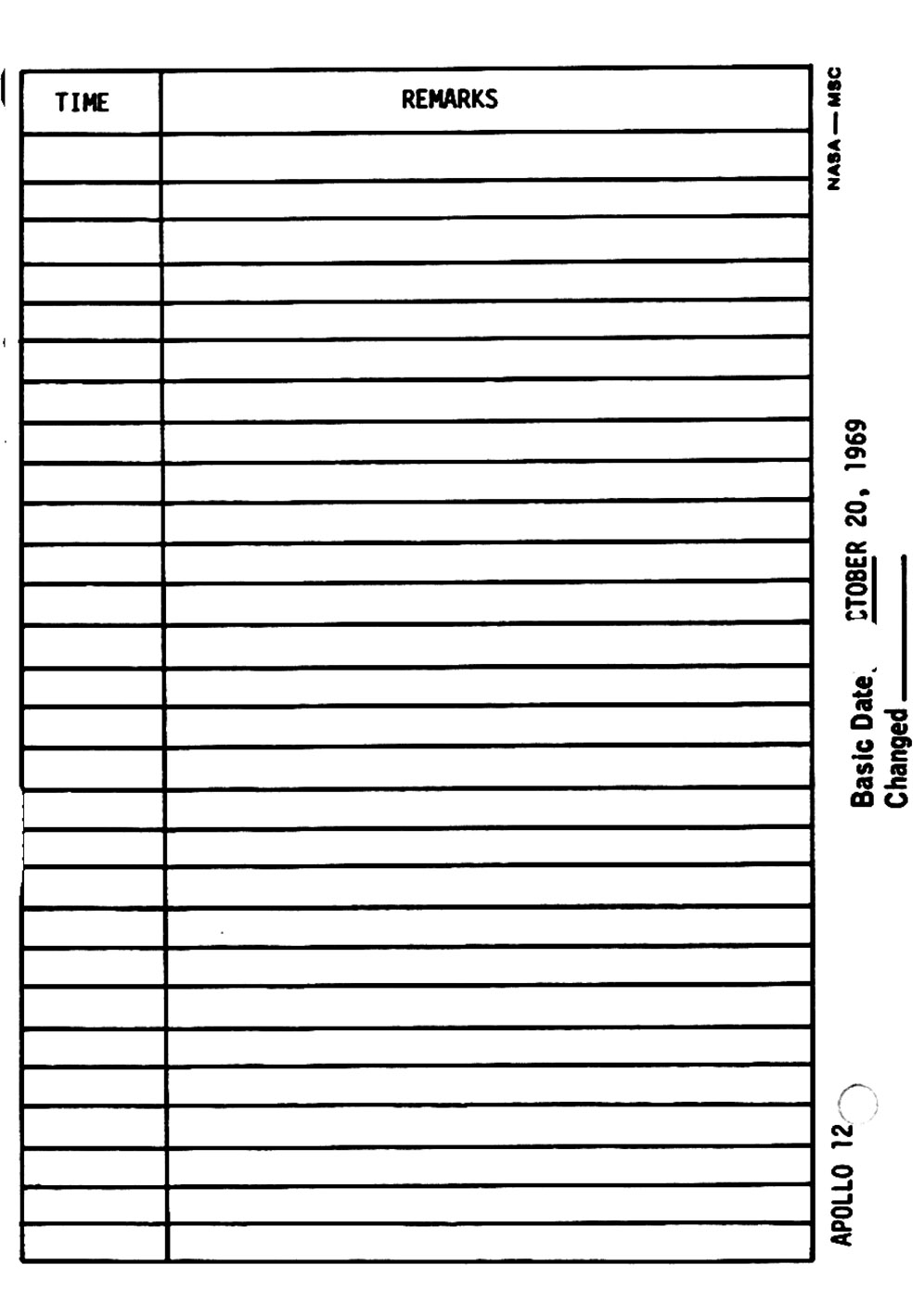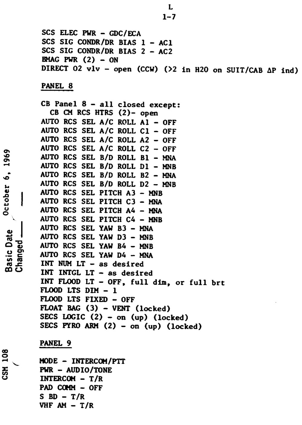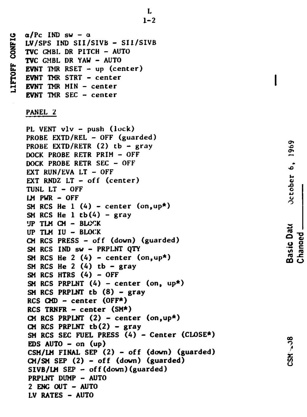 The Launch Operations Checklist presented here was derived from scans of microfilm supplied by the National Archives and Records Administration (NARA) who photographed a copy of the Launch Operations Checklist used by the Flight Activities Officer (FAO).