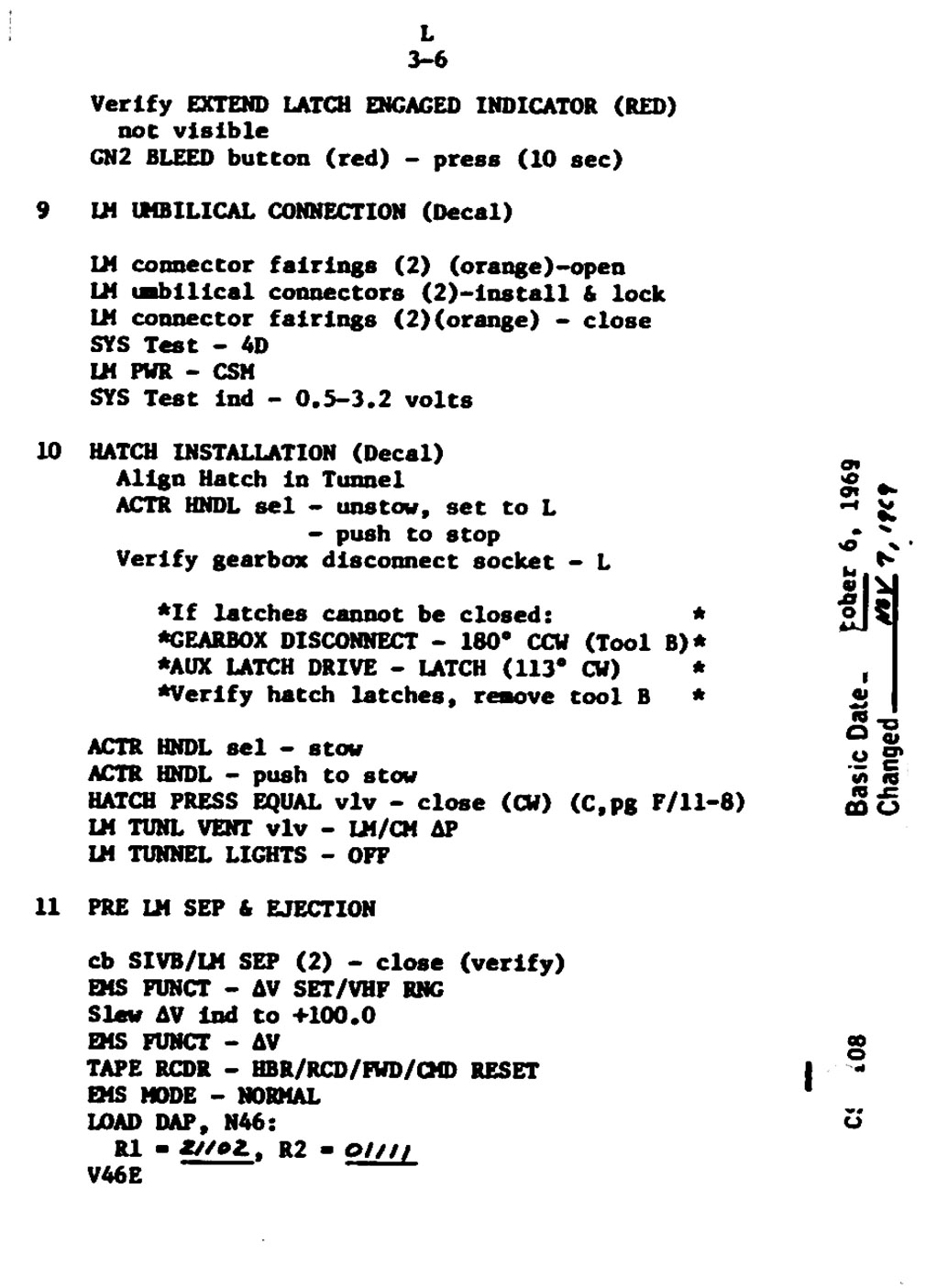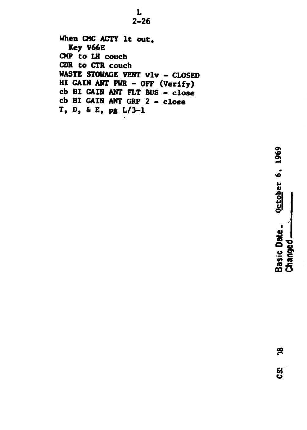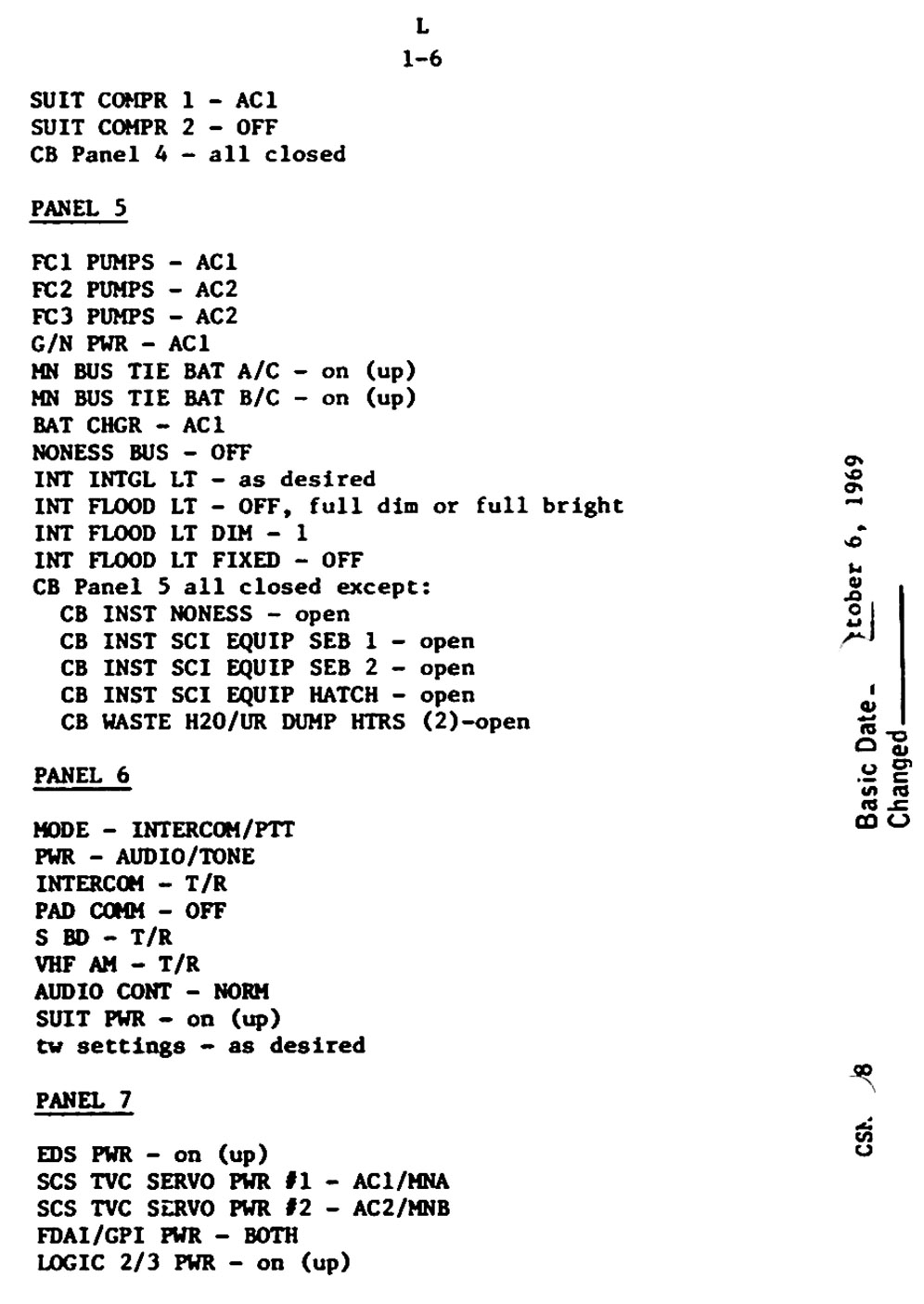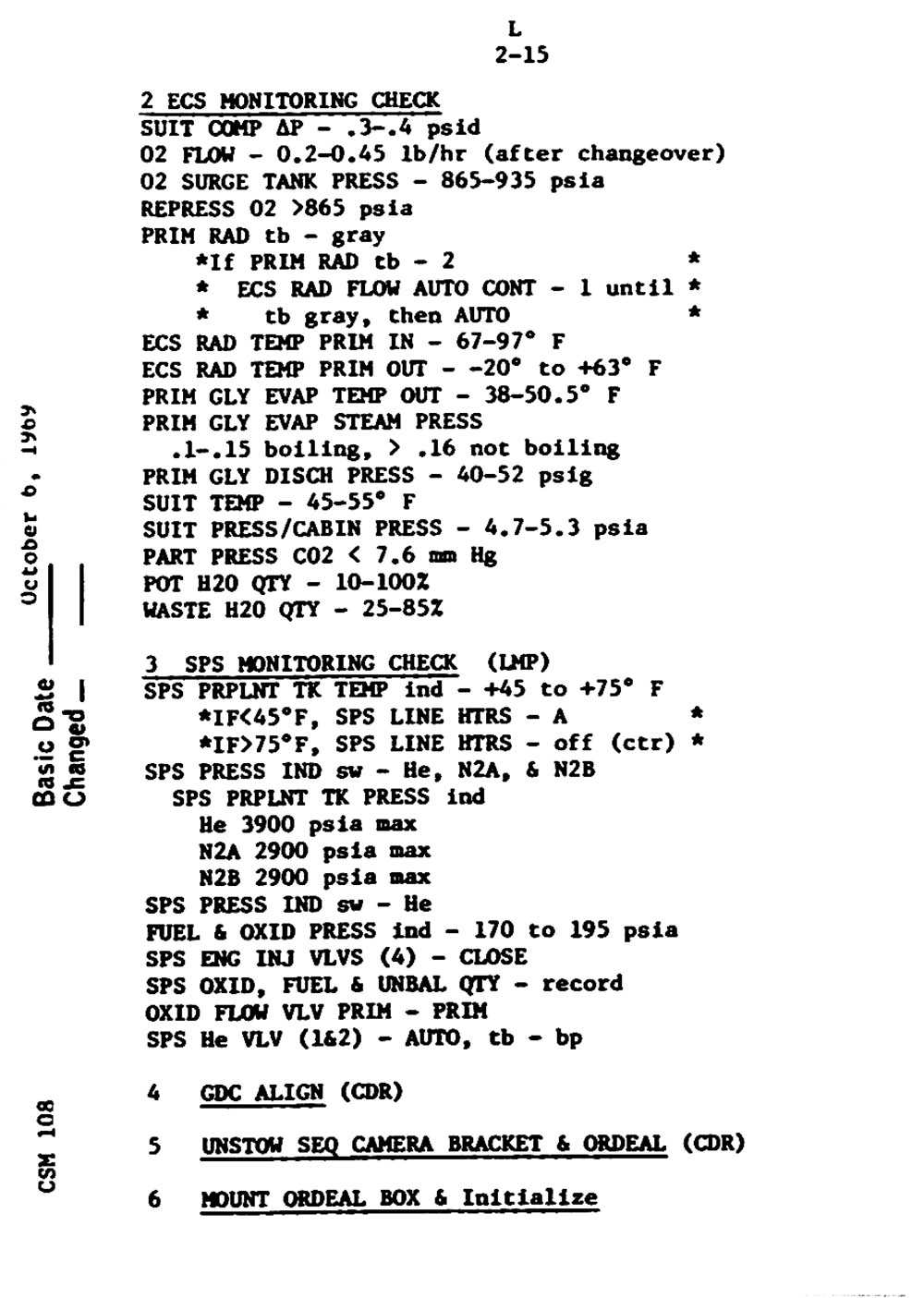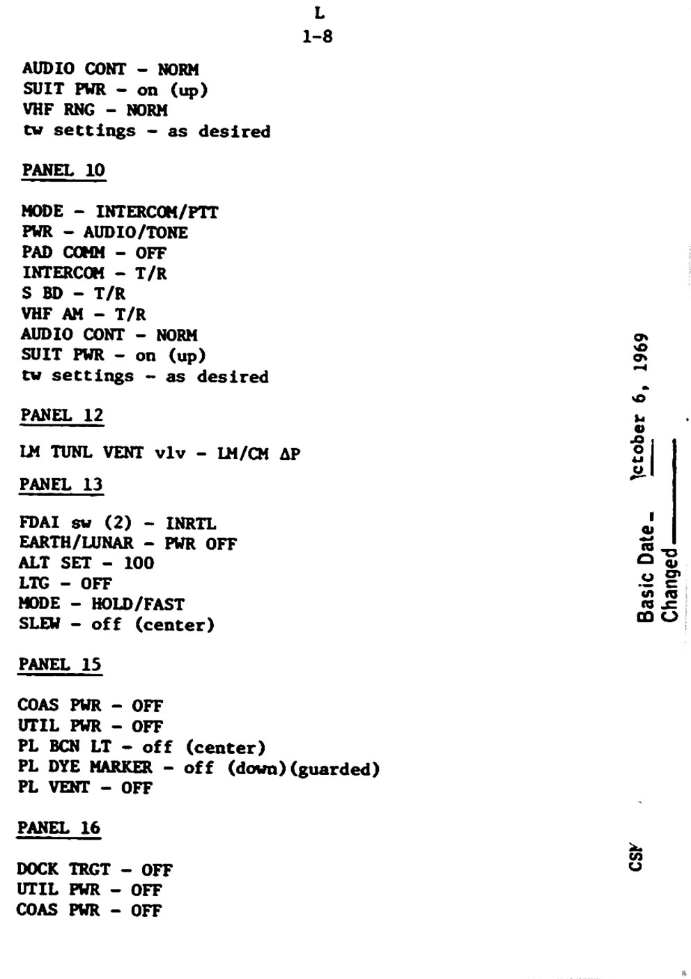 The Launch Operations Checklist presented here was derived from scans of microfilm supplied by the National Archives and Records Administration (NARA) who photographed a copy of the Launch Operations Checklist used by the Flight Activities Officer (FAO).