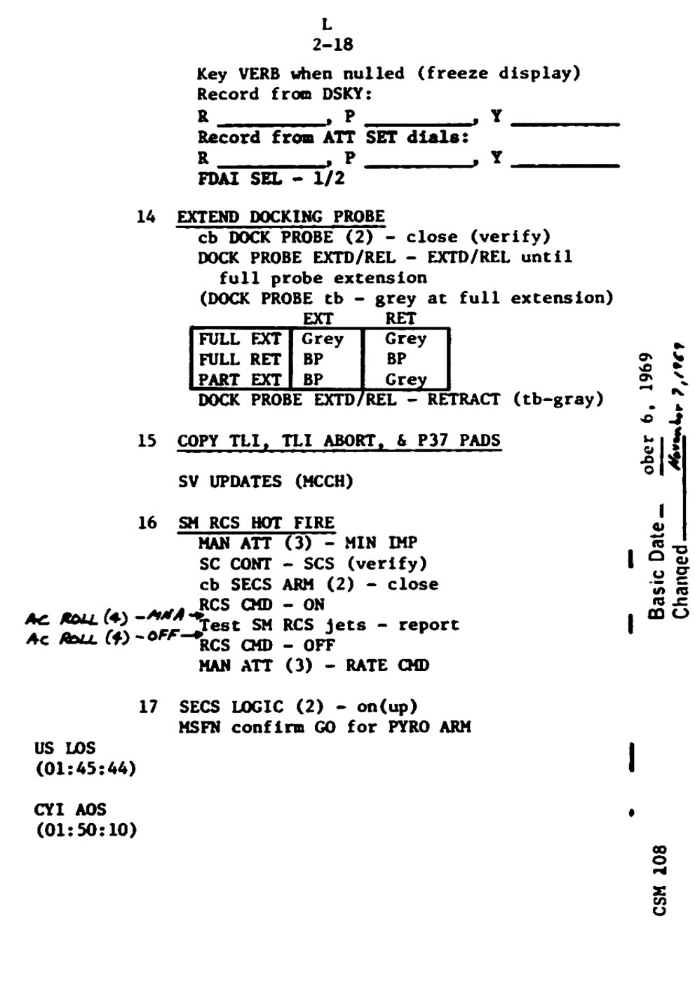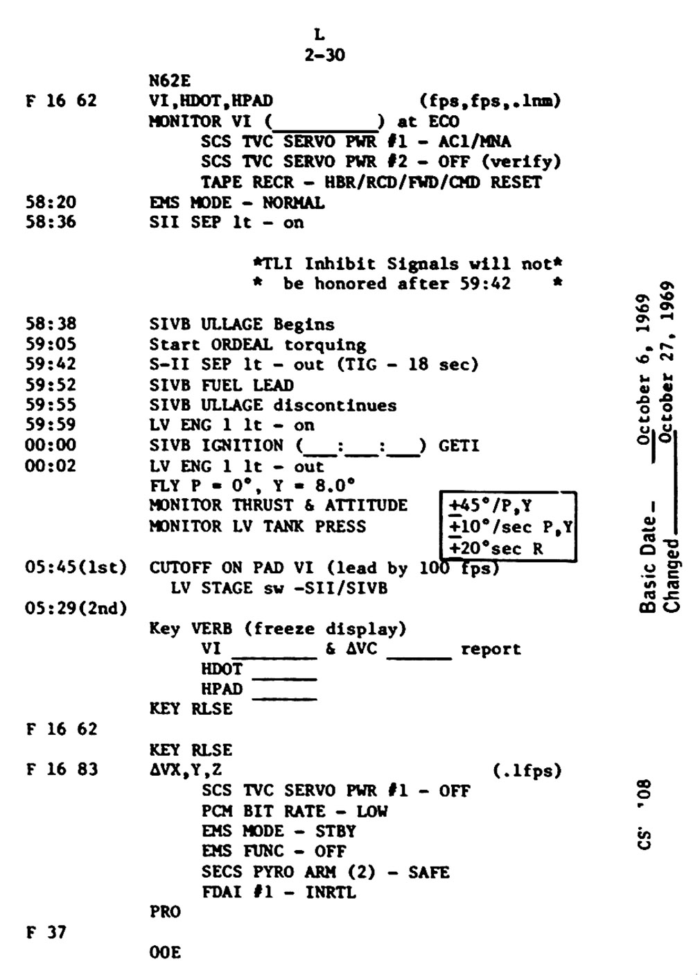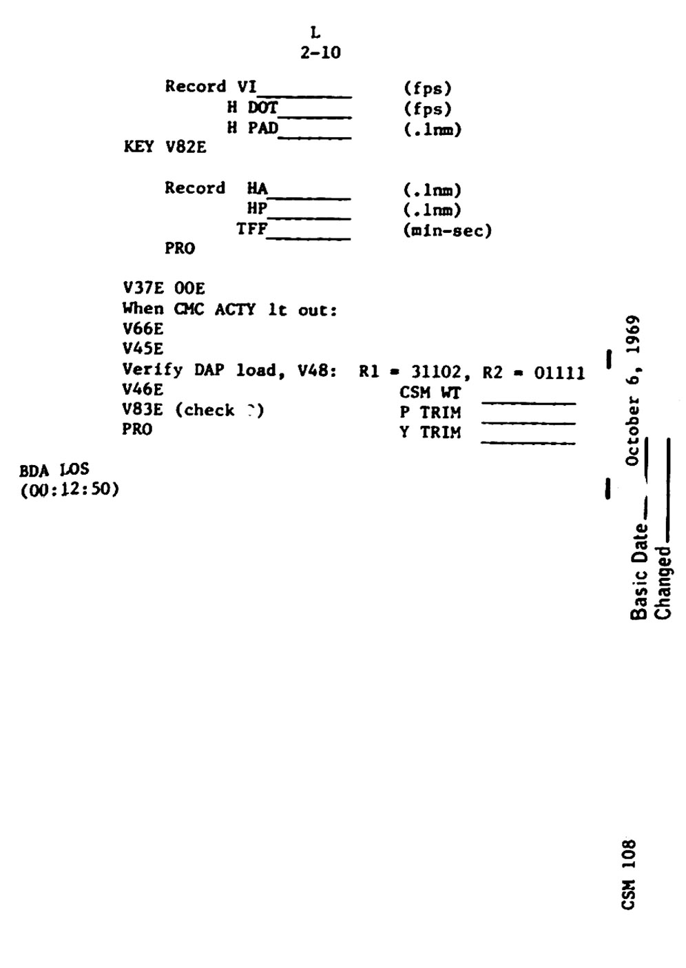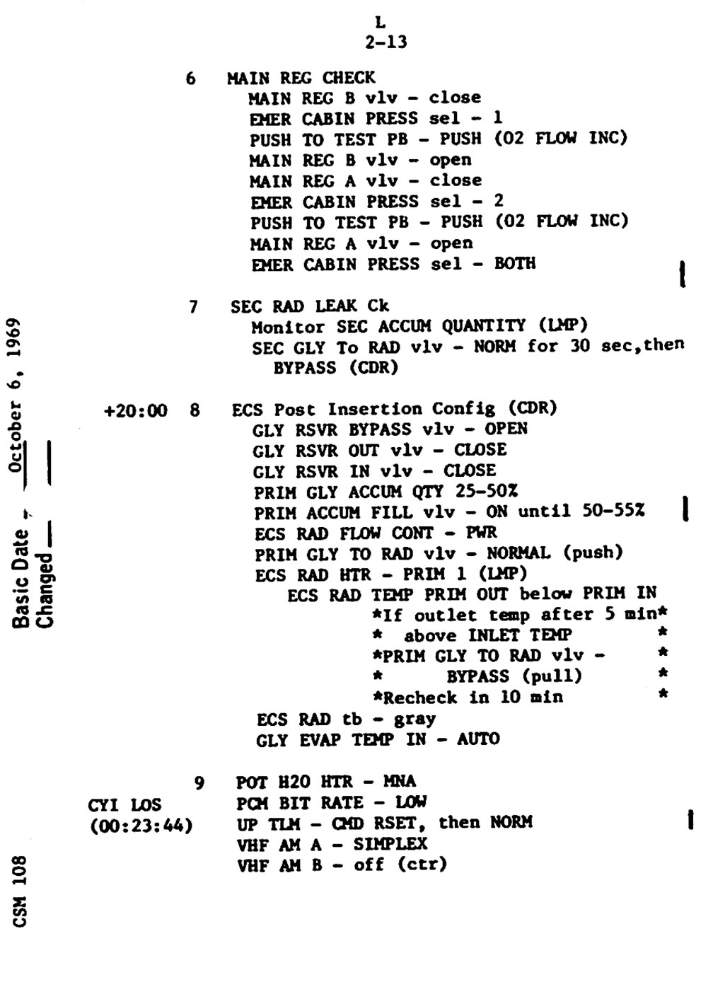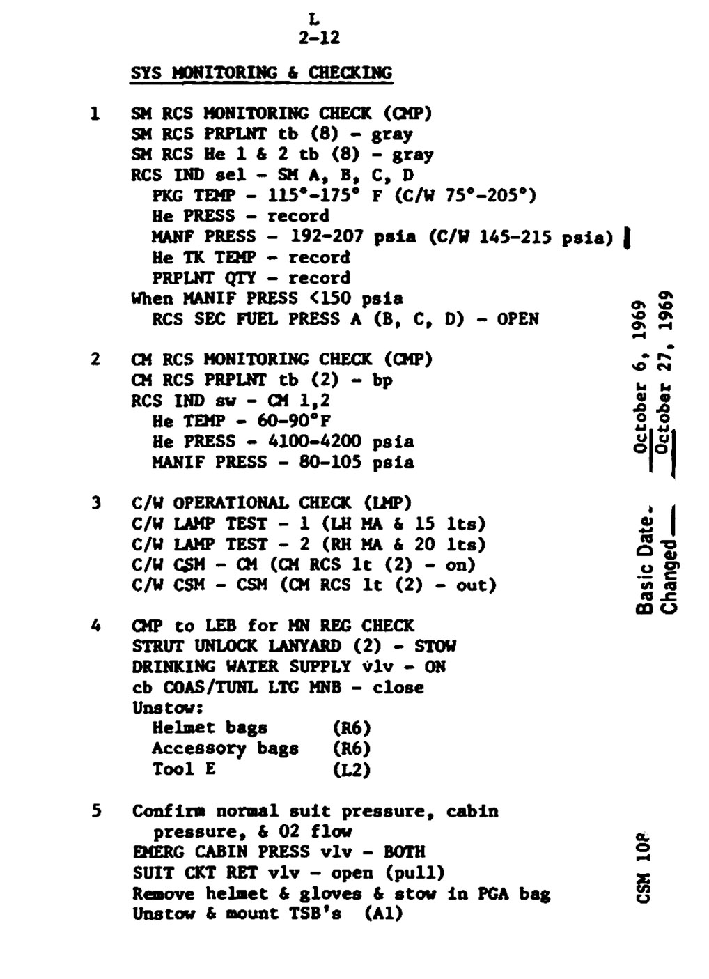 The Launch Operations Checklist presented here was derived from scans of microfilm supplied by the National Archives and Records Administration (NARA) who photographed a copy of the Launch Operations Checklist used by the Flight Activities Officer (FAO).