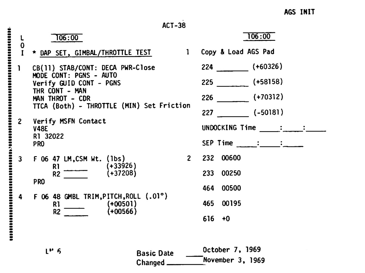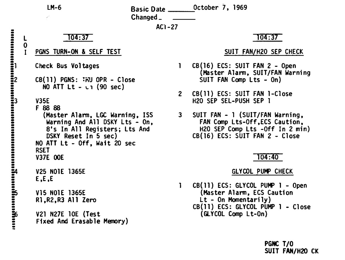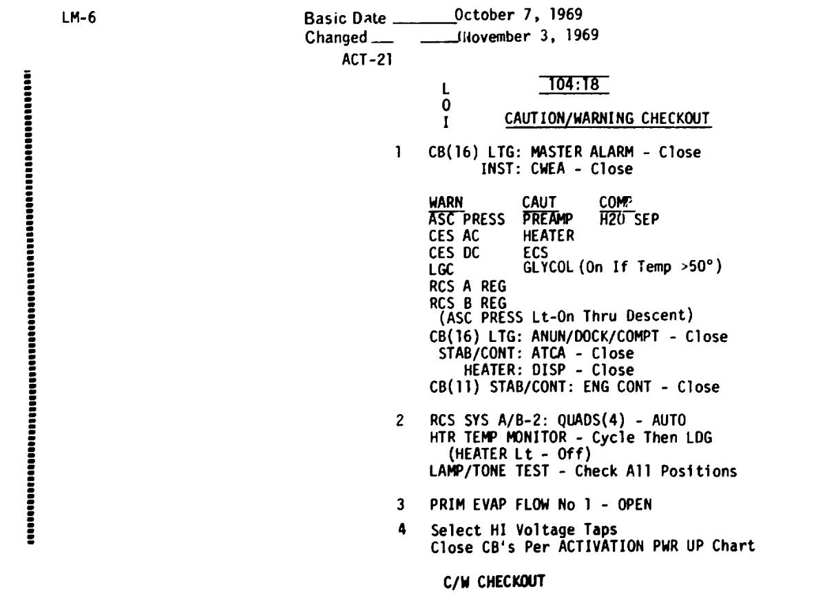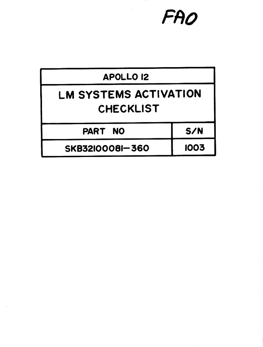 The LM Systems Activation Checklist presented here was derived from scans of microfilm supplied by the National Archives and Records Administration (NARA).