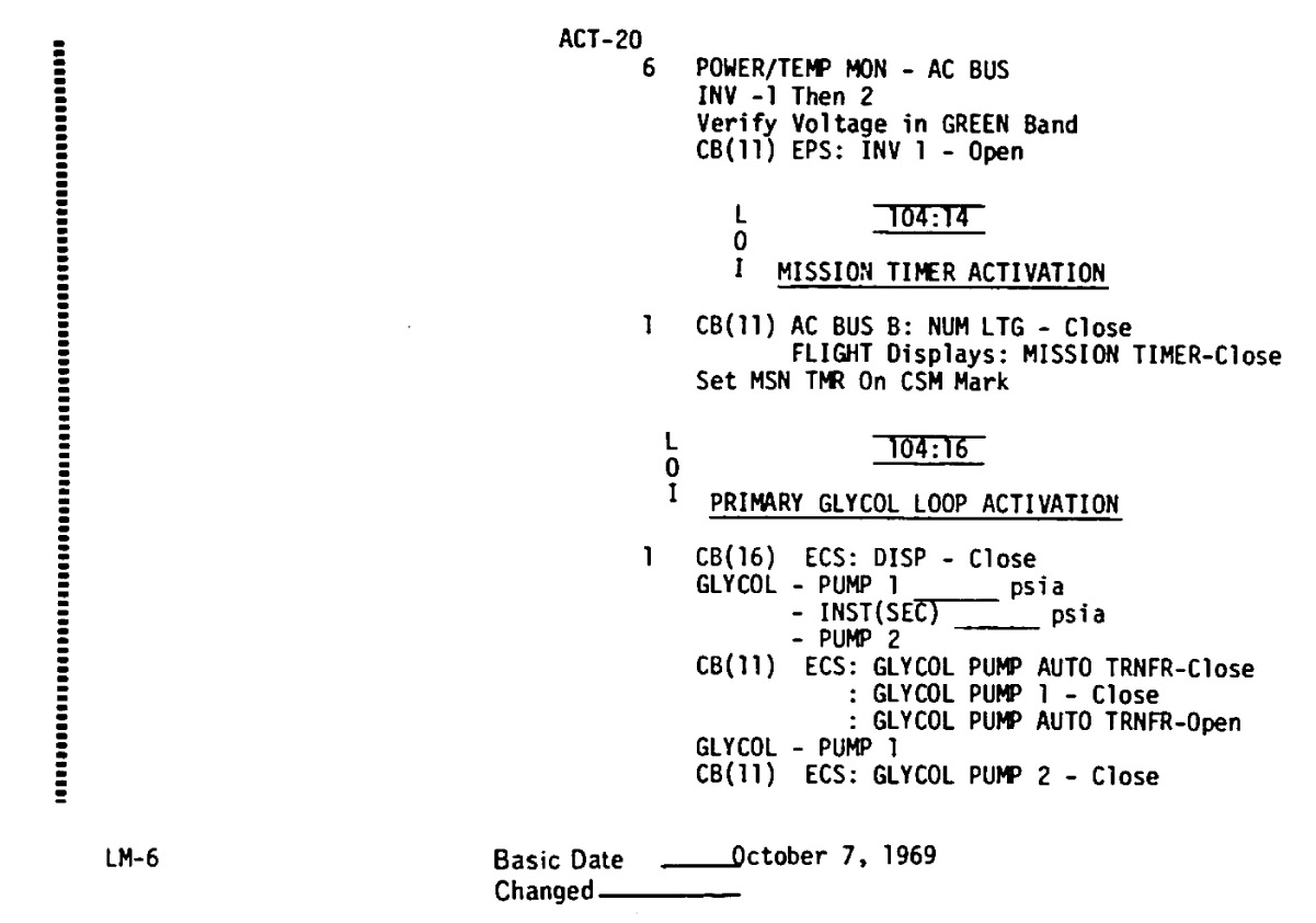 - ACT-20 - Mission Timer Activation, Primary Glycol Loop Activation