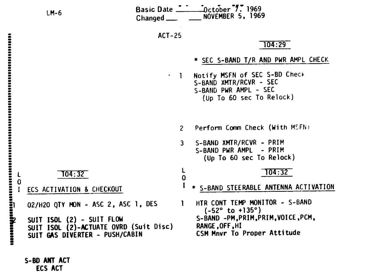 - ACT-25 - ECS Activation & Checkout, Sec S-Band T/R and Power Ampl Check, S-Band Steerable Antenna Activation