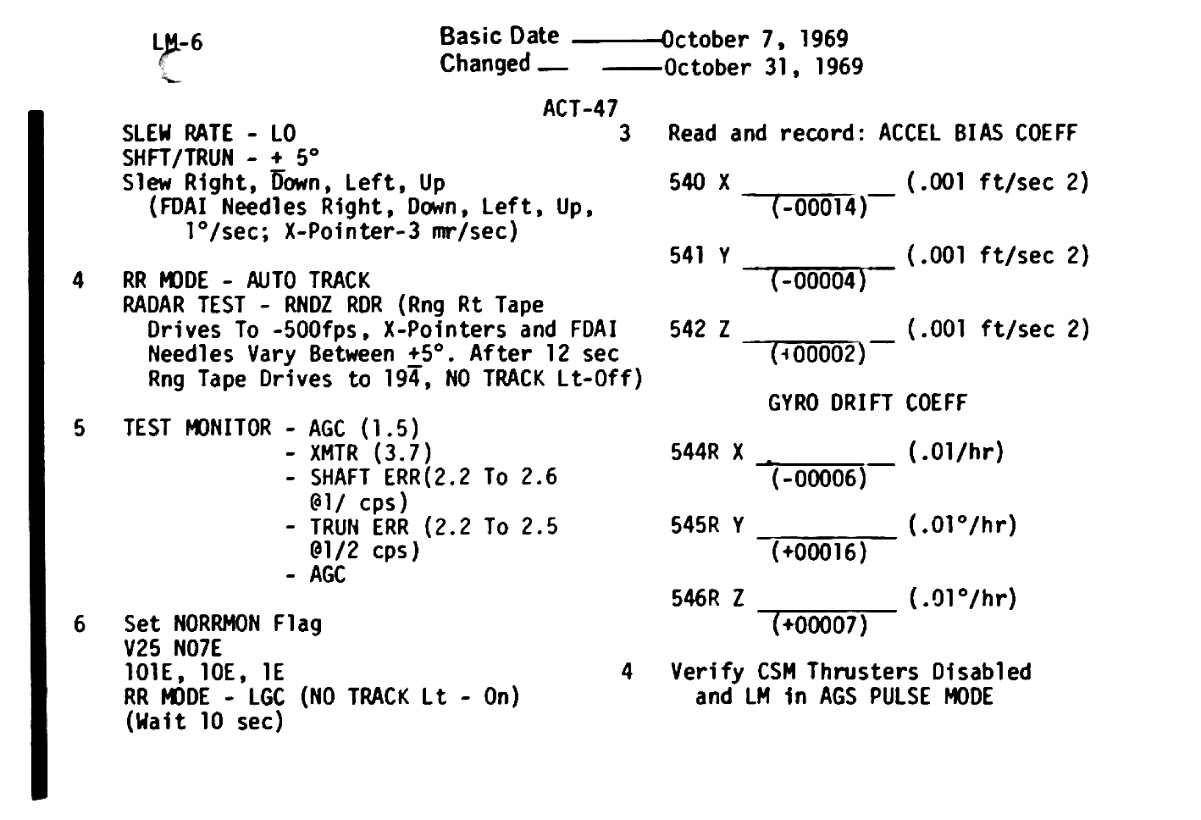 - ACT-46 - Rendezvous Radar Self Test, AGS Calibration
