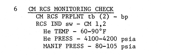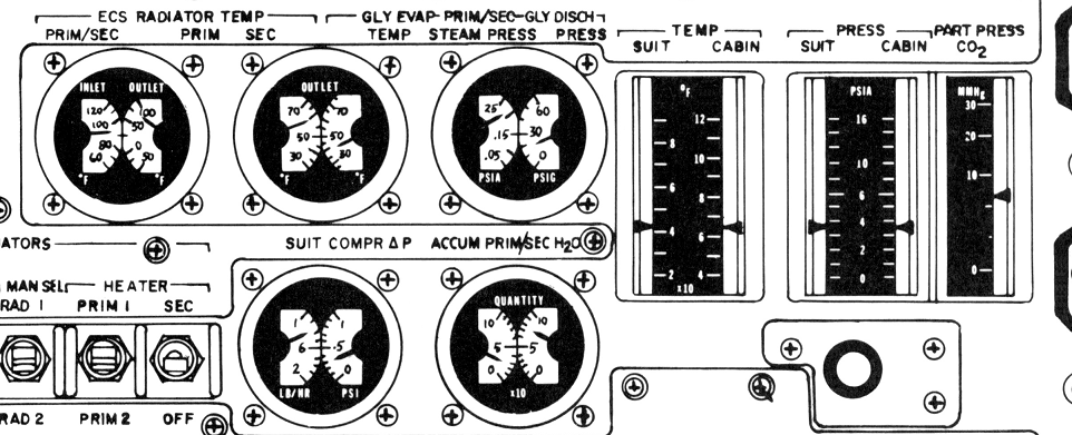 00:24:07 Lovell (onboard): Okay, number 1. And helium temperature is 80, helium pressure is 4100, and the manifold pressure is about 100.