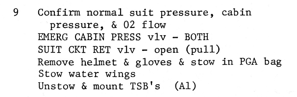 002:43:28 Haise (onboard): ... is, first of all, Waste Stowage Vent valve, Closed.
