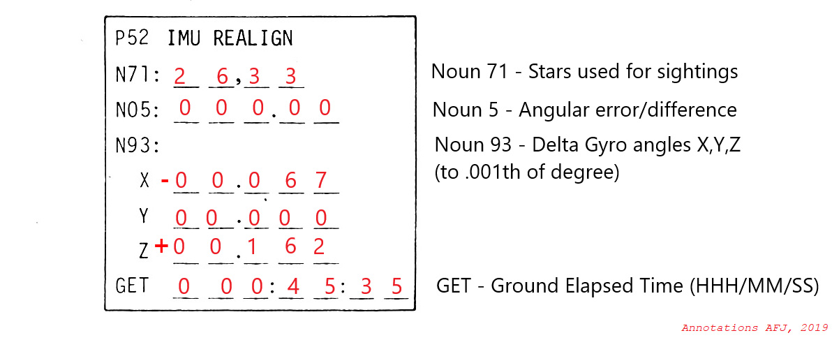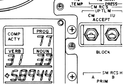 002:46:19 Haise: Okay, Joe. The DSKY read 35560, plus 04445, plus 01769, and Delta-V