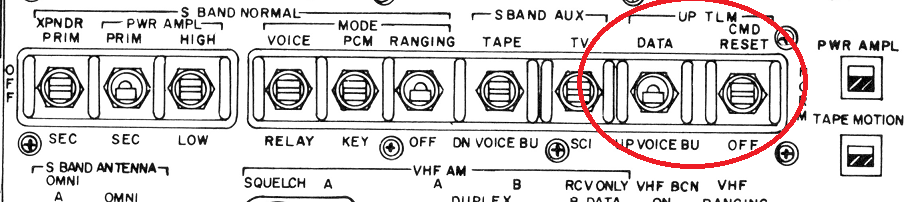 The Command Reset switch resets any remote commands Mission Control might have sent to the spacecraft. They are most often used to operate the onboard tape recorder. Original scan via heroicrelics.org