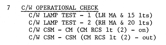 000:24:44 Haise (onboard): I've checked the caution and warning; you've done that. We're up - we're up to item 9.