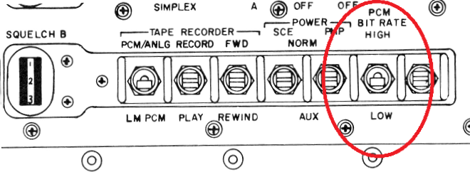 PCM BIT RATE selection switch on the bottom of Panel 3. Original scan via heroicrelics.org.