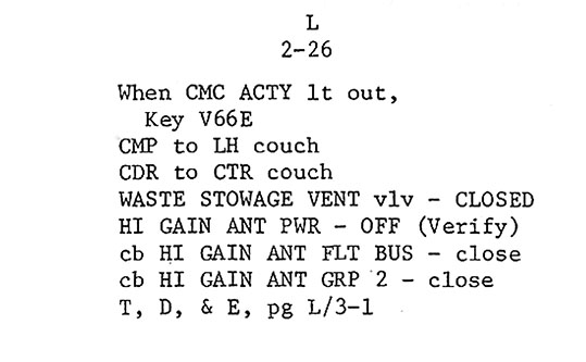 000:25:21 Haise (onboard): Compared with the simulator. Okay, let me check item 13 off; I've completed that one. Let's see.