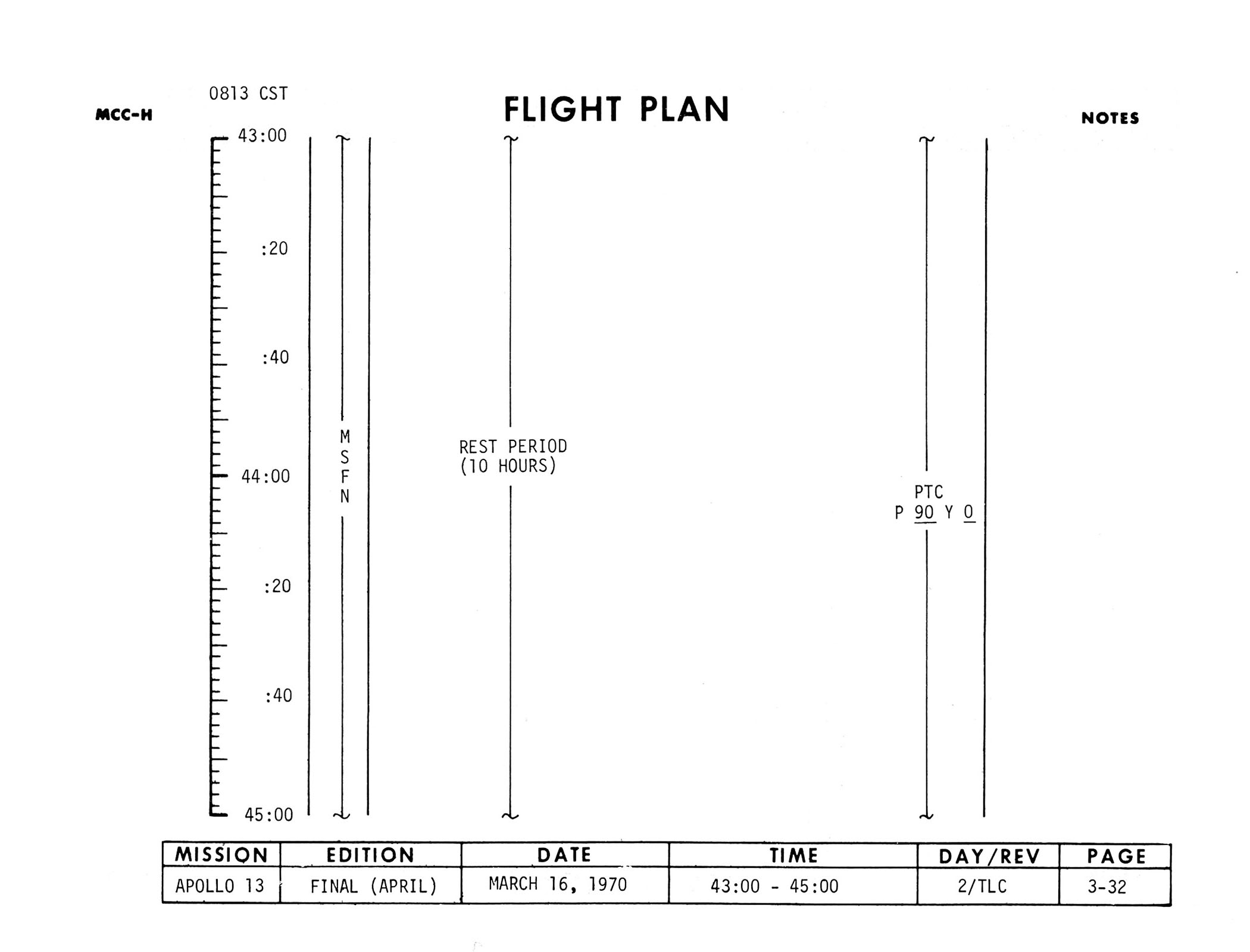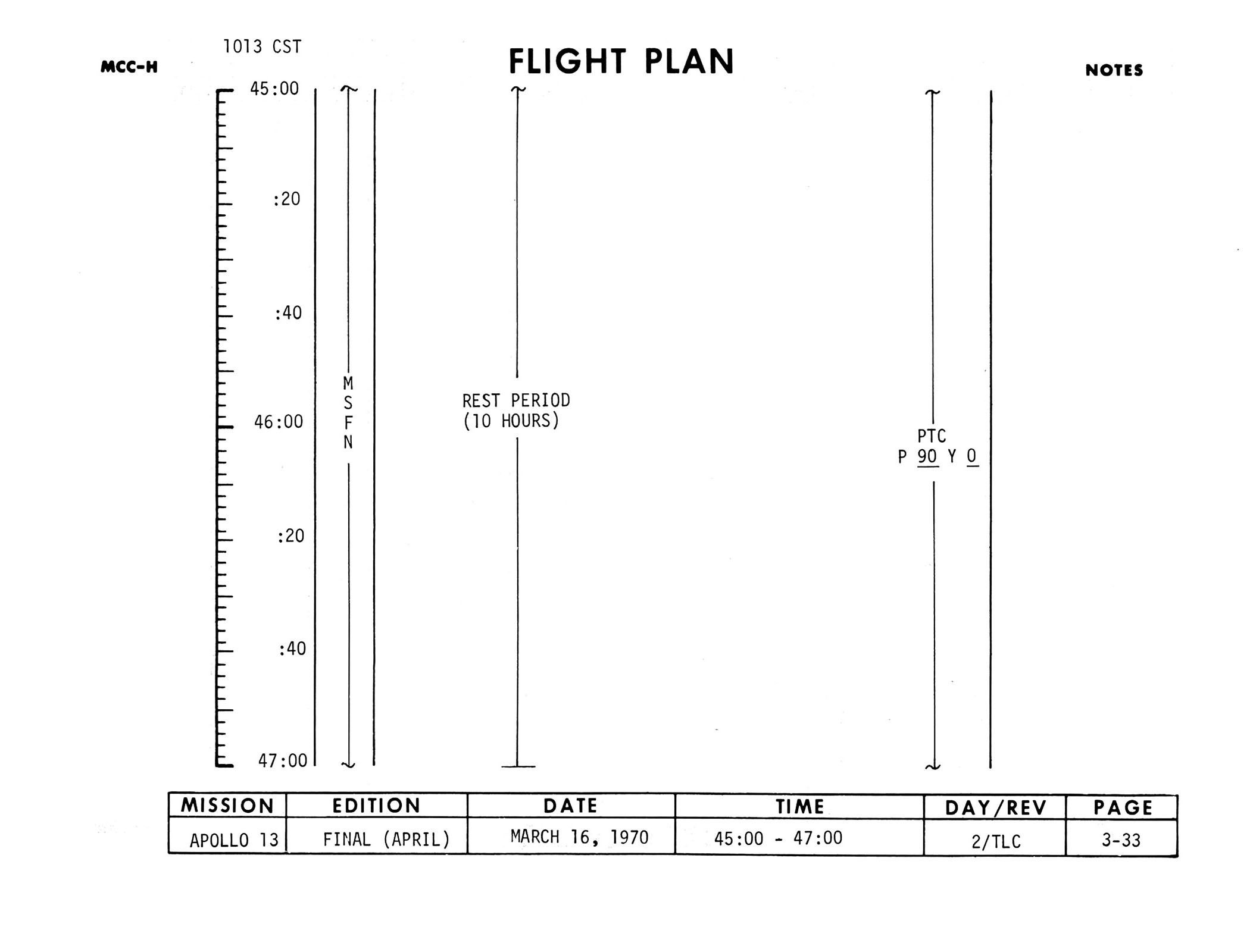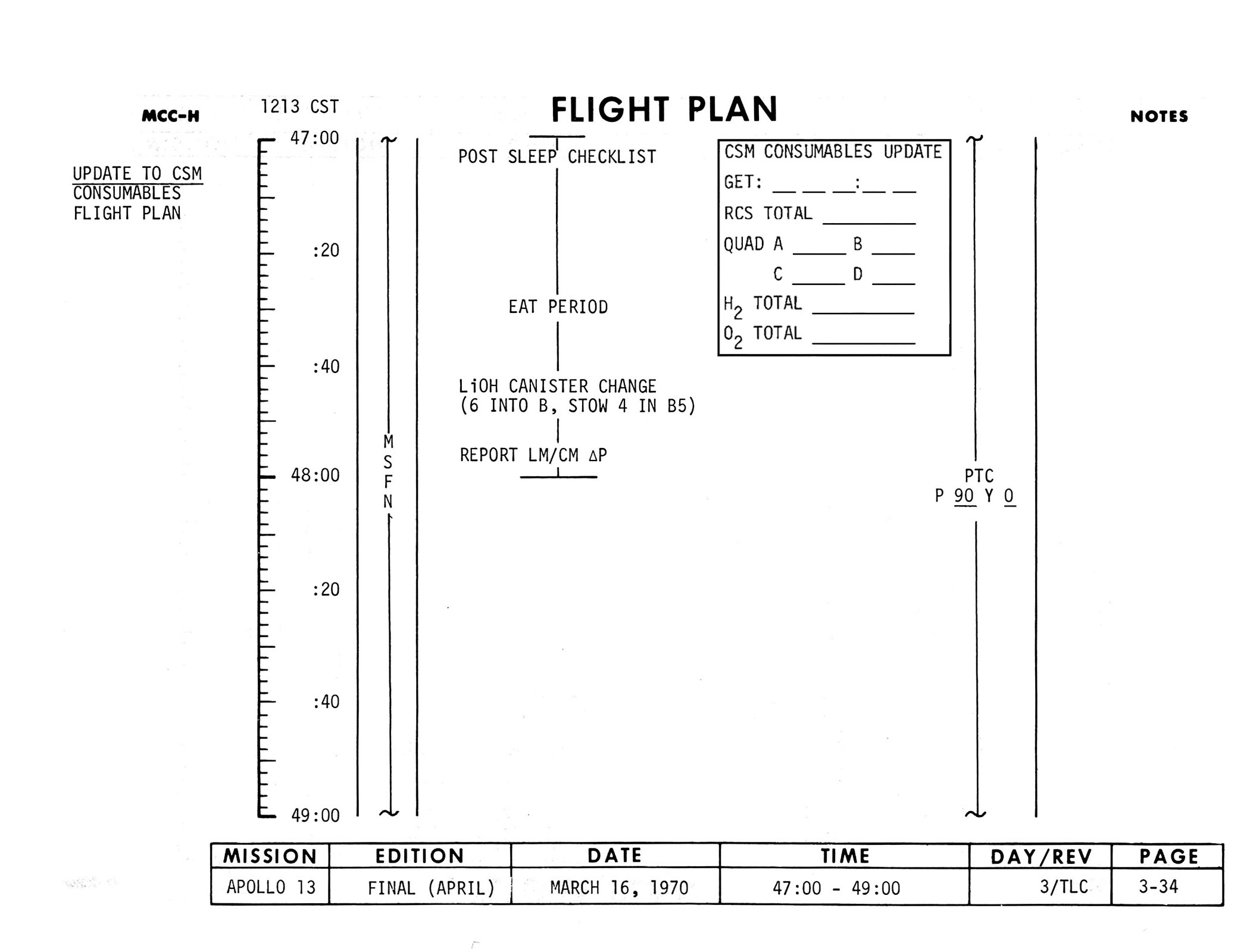 047:44:37 Lovell: Houston, 13. I'm about ready for any Flight Plan updates that you have.