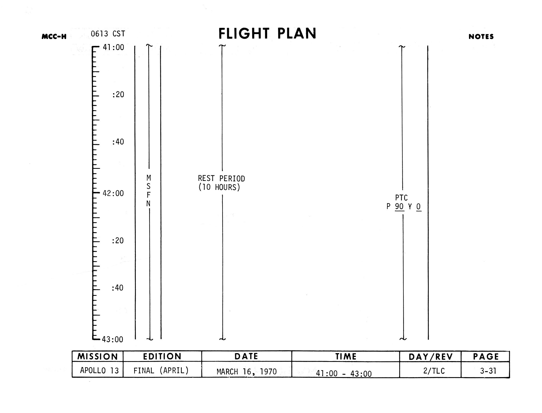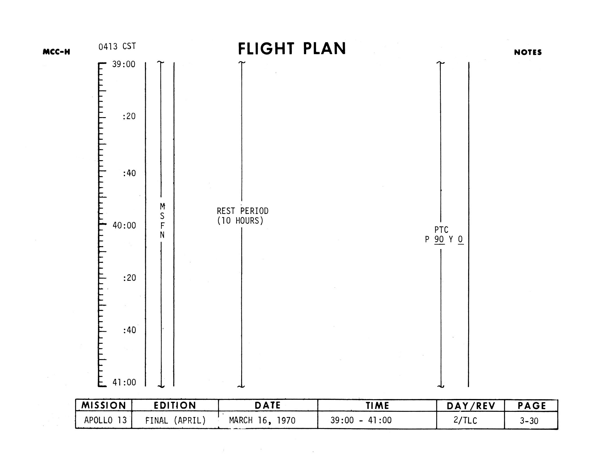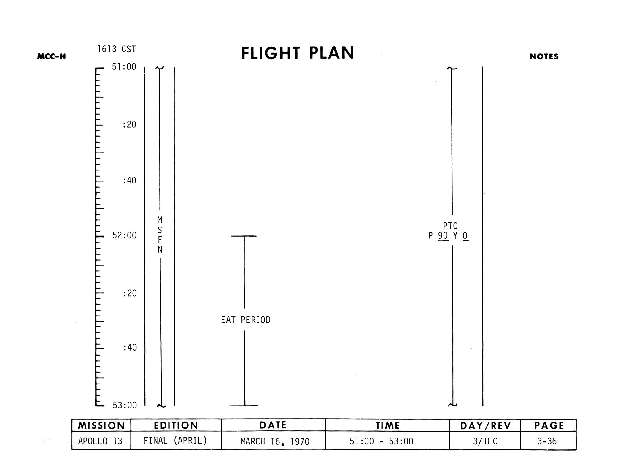 047:44:37 Lovell: Houston, 13. I'm about ready for any Flight Plan updates that you have.