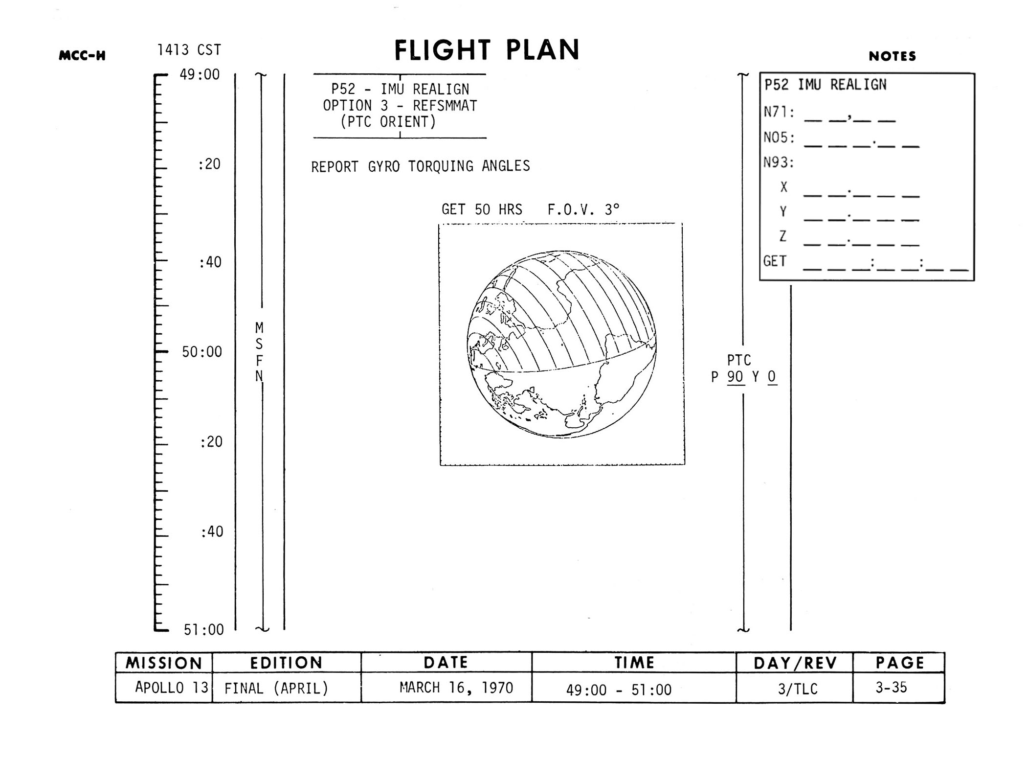 047:51:48 Lovell: Okay. Then whenever we're finished with the LM, which we anticipate around 56:30, we'll commence PTC and sometime after that we'll do a P52. [Pause.]