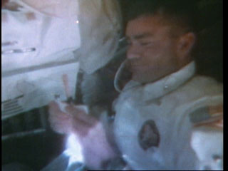 055:40:20 Lovell: And finally, Jack's let me back into the Odyssey as we slide on through the tunnel here. [Long pause.]