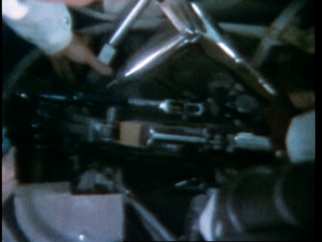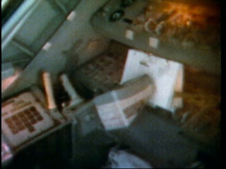 055:29:16 Lovell: Fred's now looking through our optical device. It's an instrument in which to align our platform, and Fred is now looking into it just to see what kind of an outside picture he might be able to get. We might be able to use a TV camera to look through our optical instrument to the outside of the Command Module. A few minutes ago while we first came in, we did manage to look to the outside of the side hatch of the Command Module through our optical instrument. Stand by. We'll try to see what we can do here.