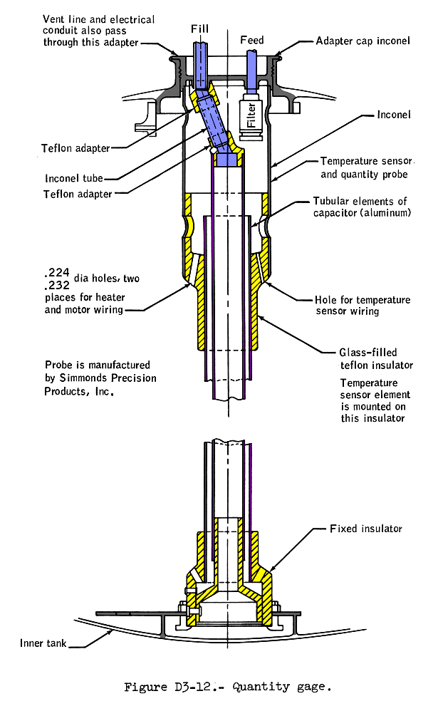 Diagram of the capacitor tube-within-a-tube quantity sensing arrangement within the cryogenic storage tanks.
