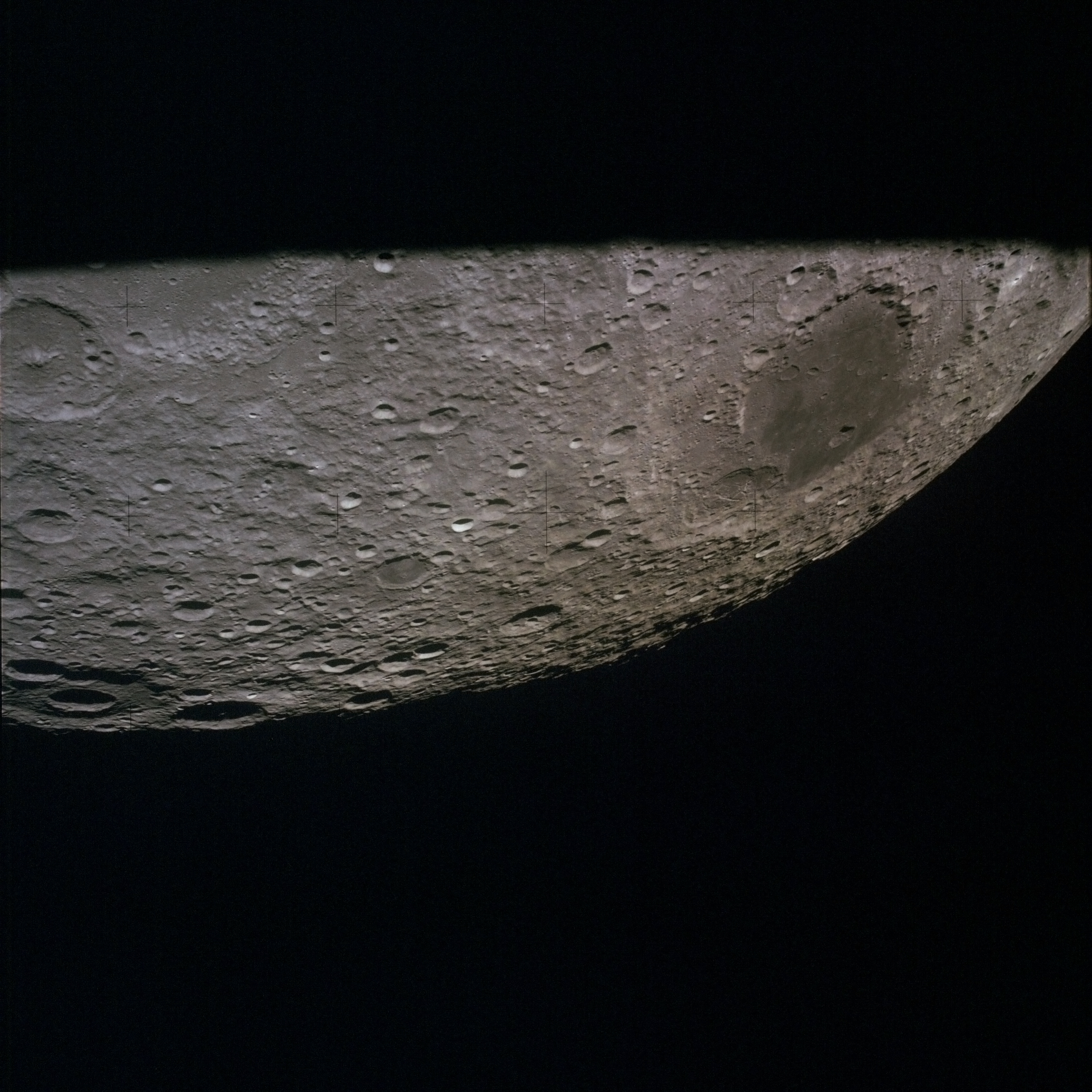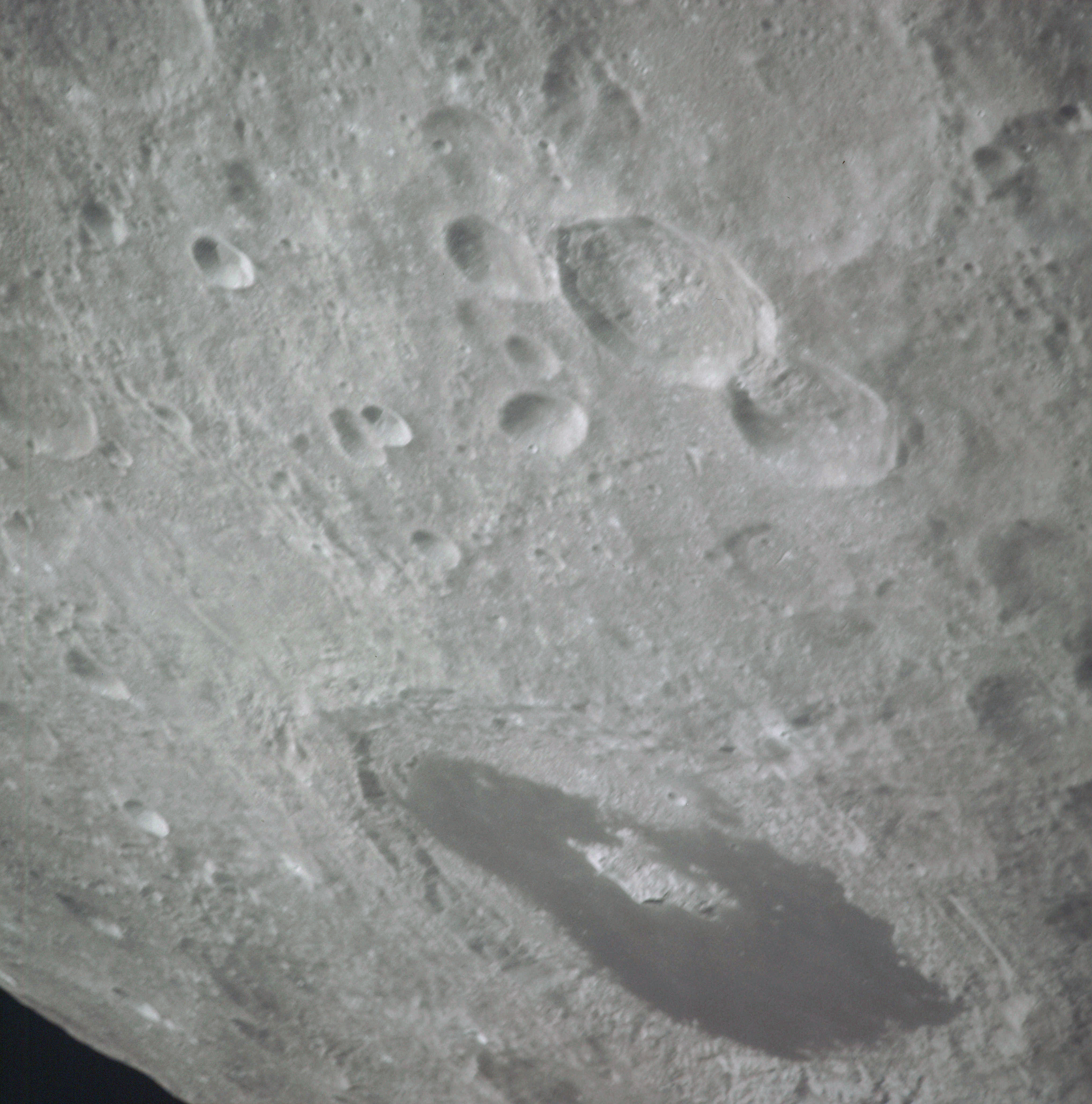 077:41:44 Lovell: Hey, if you want to use the 250? There's a beautiful shot of Tsiolkovsky which we very seldom have. [Pause.]