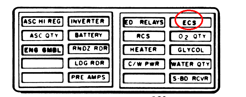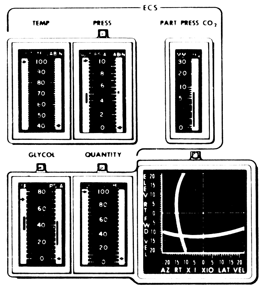 ECS displays at the System Engineer's (LMP's) console at the LM cabin. Scan via heroicrelics.org