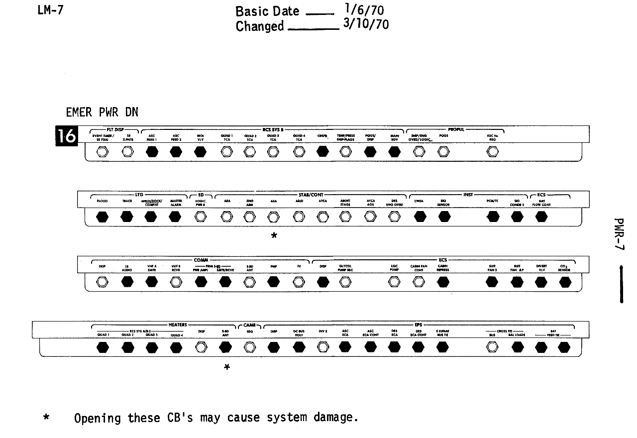 082:09:38 Lovell: Okay. Again, let me go through this with you. The first four are going to be closed. The next sev - eight will be - the next nine will be open from Logic Power B through Descent Engine Override. How about the CWEA? Is that going to be closed?