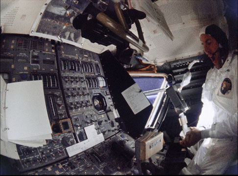 082:44:08 Haise: Yes, that's pretty straightforward. Okay, I see the Earth so I've very wisely shifted to FORWARD.