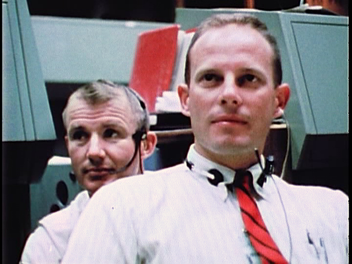 Gene Kranz at the midnight conference after the PC+2 burn. NASA 16mm film capture. NARA.