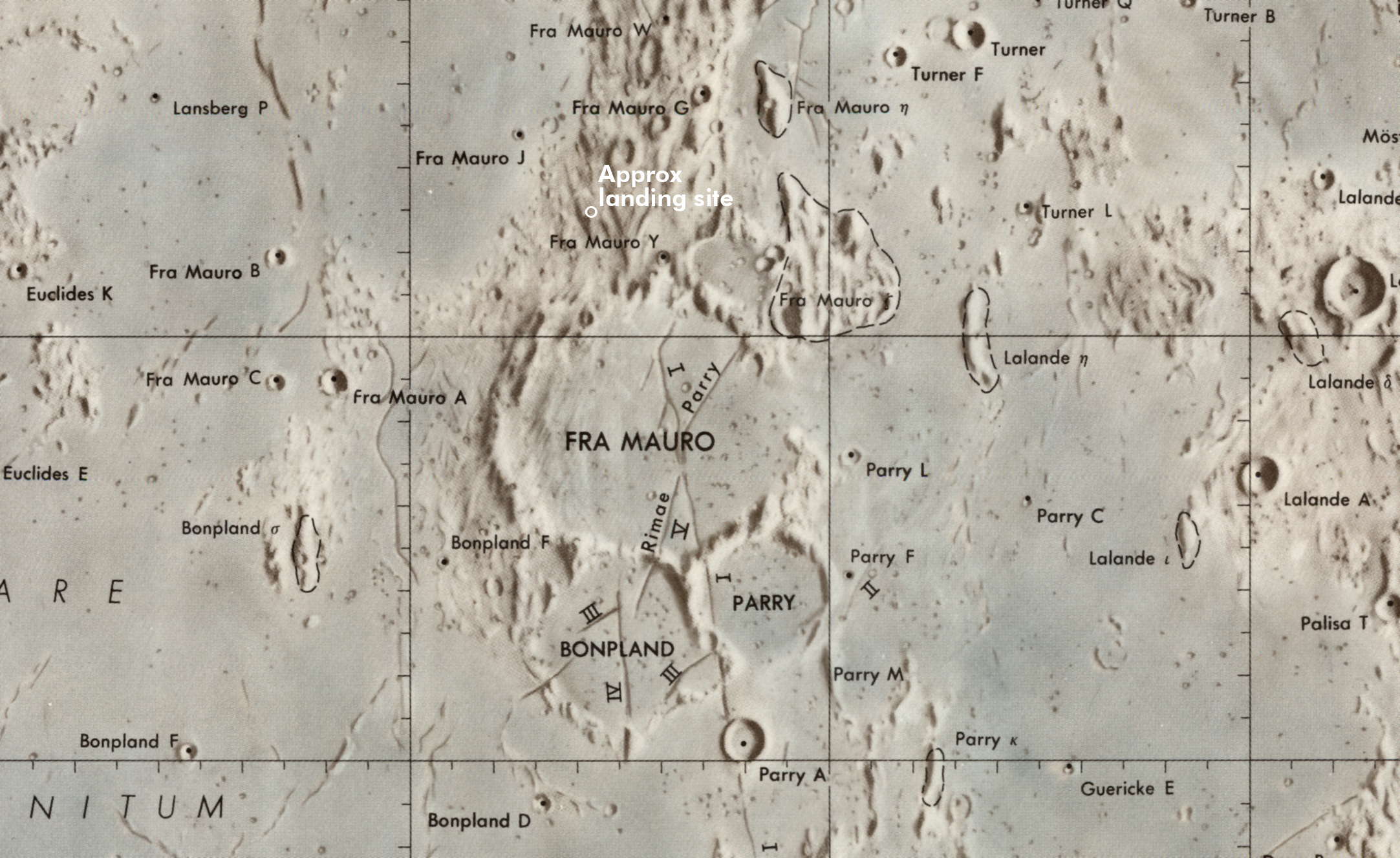 087:23:46 Lovell: Roger, Jack. The latitude is minus 21.62; longitude is minus 165.37, and this goes in conjunction with that midcourse 7 pad you gave us.