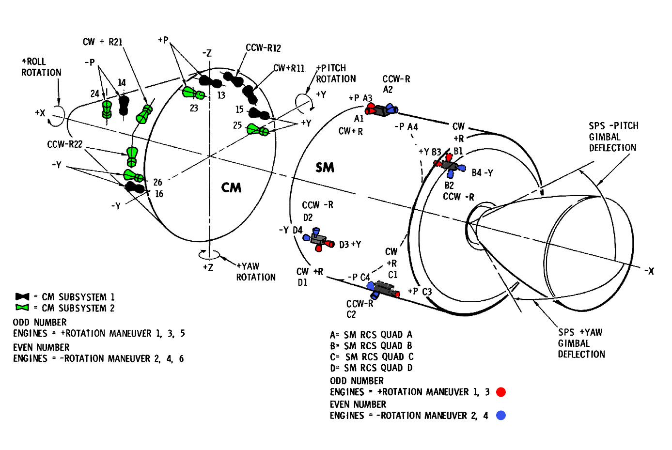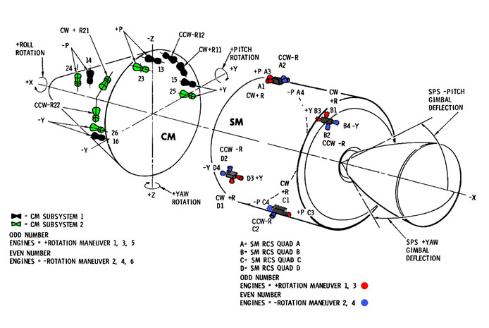 087:46:43 Lousma: Jim, in that control mode, that sounds like the best way to go. The only thing you'll have to do is to get Attitude Hold in the AGS, and so before you start to maneuver, you'll have to bring the AGS up, and get a 400 plus all zeros in there, and then AGS will respond in yaw when you go to Mode Control. That is, AGS will control your yaw in Mode Control and your pitch and roll can be taken care of in Pulse with a TTCA. After you get in attitude, then, you'll have to re-do an AGS body axis align which is 400 plus 5, then go back to 400 plus all zeros again.
