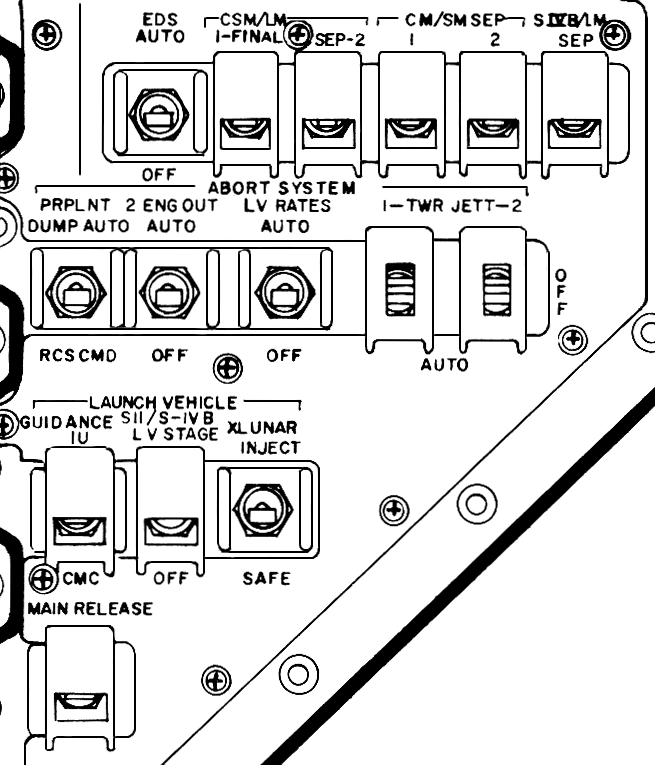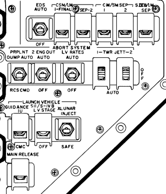 Pyrotechnic separation control switches on the bottom of Panel 2 on the MDC. Original scan via heroicrelics.org.
