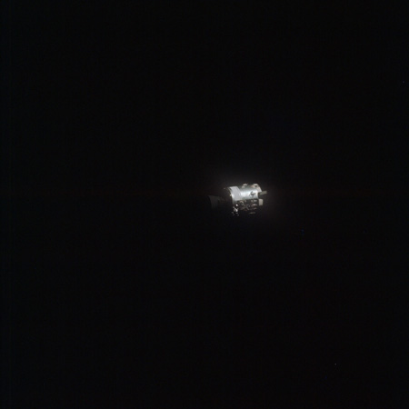 AS13-59-8500 - Hasselblad 70mm B&W, 80mm lens. Taken from a distance of c.410 feet. This is the source for Figure 1, Image A.