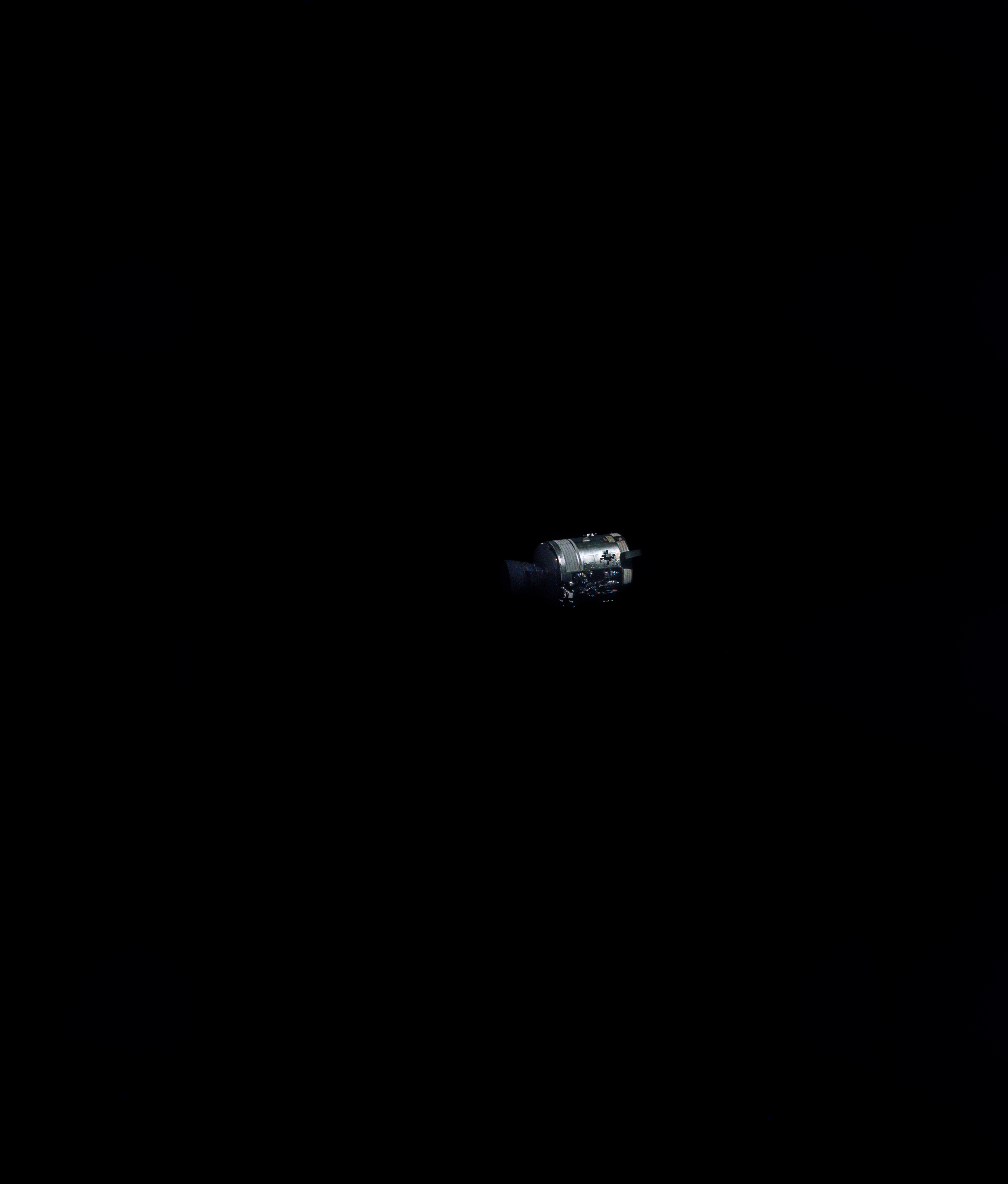 Image B is a very similar angle to Image A and the stacking process has revealed a surprising amount of detail for hand held 16mm camera footage. This image holds the best colour information of the three images (note the Kapton/Mylar blown loose from Bay 4). Of particular note in this new image however, is the apparent damage to the engine nozzle – more significant than has previously been indicated in the Hasselblad frames.
